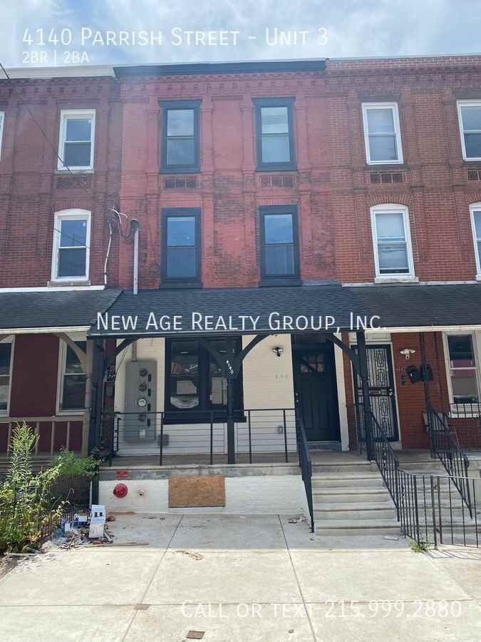 Welcome to 4140 Parrish Street in Philadelphia, PA! This recently renovated apartment boasts 2 bedrooms and 2 bathrooms, perfect for those seeking a comfortable and convenient living space. Enjoy the convenience of a washer/dryer in-unit, as well as a dishwasher for easy clean-up. Stay comfortable year-round with central heat/AC. Step outside to your own outdoor space, perfect for enjoying the fresh air. Don't miss out on this opportunity to make 4140 Parrish Street your new home! Tenants responsible for electric and $50 per month for water Tenants must obtain renter's insurance All New Age tenants will be automatically enrolled in a Resident Benefits Package (RBP) for $25 per month, which includes $5k in property damage reimbursement, credit building through timely rent payments, a resident rewards program, and so much more! These benefits are designed to improve your living experience and put money back into your pockets. All information about this package can be found at https www newagerealtygroup com tenant-hub Please Note: To process the applications a holding fee equal to one month’s rent must be paid after submitting the application(s). Upon approval the unit will be removed from the market & the holding fee becomes the security deposit for the unit moving forward. If your application is declined, we will refund the holding fee within 2 business days. We collect first month’s rent, and a security deposit for all our properties. These balances MUST be paid in certified funds. To schedule a showing, please visit our website at https www newagerealtygroup com vacancies or send an email to **** for more information. Central Heat/Ac Outdoor Space Washer/Dryer