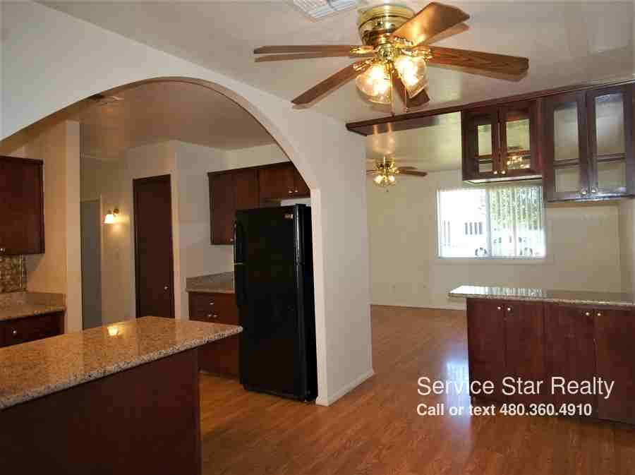 ONE MONTH FREE RENT CREDIT!! This fantastic 3BR 2BA home has wonderful upgrades throughout! The split floor plan offers separate living and family rooms. Blinds and ceiling fans to help keep cool. The formal dining room looks in to the kitchen with granite counters, matching appliances and decorative backsplash. The large family room features a fireplace and has access to the inside laundry/workshop! The master bedroom offers plenty of space and en-suite private bath. Two guest rooms are spacious, one with built in storage. Schedule your self guided tour today! STATUS: Vacant PET RESTRICTIONS: No Aggressive or Dangerous Dog Breeds, specific breeds are listed in our rental criteria http://www.leaseaz.com/pdf/Terms%20Of%20Application.pdf SMOKING: No smoking is allowed on the premises SHOWING INSTRUCTIONS: To Schedule a Showing GO TO: http://www.leaseaz.com/schedule-a-showing Register for a Self-Guided Tour Receive txt or email confirmation On the day of your visit receive a CODE to retrieve key from electronic lock box APPLICATION INSTRUCTIONS: GO TO: https://app.propertyware.com/pw/portals/servicestarrealty/tenantApplication.action Ensure that you have all the required documents handy and ready to attach to application Complete the Online Application Form Pay the Application Fee with credit or debit card SECTION 8/HOUSING ASSISTANCE: Not Accepted More Information: AREA INFORMATION: 1740 sq ft FLOORING: Tile/Carpet/Wood GARAGE/PARKING: Carport KITCHEN/LAUNDRY APPLIANCES INCLUDED: Fridge, Range, Dishwasher PROPERTY TYPE: single family home UTILITIES INCLUDED: Tenant to pay for all utilities YEAR BUILT: 1966 YARD: grass Additional Amenities:Fireplace Application, Lease Terms, and Fees MOVE-IN FEE: $195 Lease Administration Fee, $250 Pet Application Fee where applicable HOLD FEE/EARNEST MONEY: Equals one month rent and it is due within 24 hours of application accepted. ADDITIONAL FEES NOT INCLUDED IN RENT: $19 monthly admin fee and city sales tax Application Fee: Non-Refundable, $55/adult APPLICATION TURNAROUND TIME: 3 business days LEASE LENGTH: 1 year or 2 years LEASE TO PURCHASE OPTION: Not Available SPECIAL LEASE PROVISIONS: None HOA Instructions HOA AMENITIES AND SERVICES: no HOA HOA FEE: Paid for by the owner PROPERTY MANAGER: SH All information is deemed reliable but not guaranteed and is subject to change. Tenant to verify all material facts including but not limited to room sizes, utilities, schools, HOA rules, community amenities, fees and costs, etc. Blinds Disposal Fridge Granite Counters Mature Trees Pets Allowed Range/Oven Separate Family Room W/D Hookups