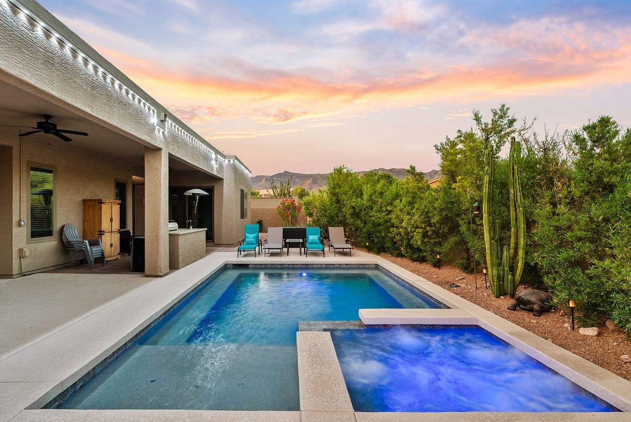 Welcome to Gold Canyon Bliss, your ultimate family-friendly VACATION RENTAL! Nestled in a serene oasis, this private resort boasts five spacious bedrooms and four baths, ensuring ample space for everyone to unwind and relax. Challenge your loved ones to a friendly game of pool or gather around the game table for some cards or board game fun. With entertainment options galore, there's never a dull moment at Gold Canyon Bliss. Step outside and bask in the Arizona sun by your very own private pool, or soothe your muscles in the bubbling hot tub. The outdoor kitchen is perfect for whipping up delicious meals while enjoying the fresh air and stunning surroundings. For golf enthusiasts, sharpen your putting skills on the beautifully installed putting green, ensuring you're ready to hit the nearby golf courses in style. Whether you're seeking relaxation or adventure, Gold Canyon Bliss offers the perfect blend of comfort and excitement for your dream vacation getaway. This Vacation Rental is a three night minimum at $196 per night. We also welcome longer term stays. Price listed is for 30 day stays. Contact me for more details and dates.