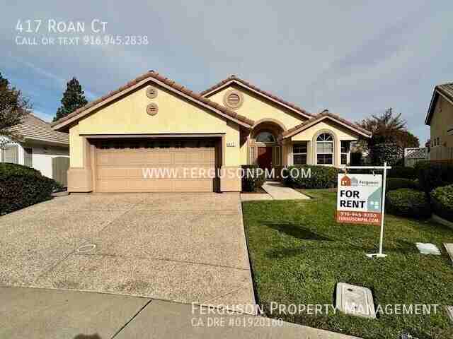 Please note that this is an AGE RESTRICTED community. Tenants must be 55 years of age or older. Gorgeous Rosetree Model with a large backyard. Features include tile flooring, kitchen nook with large bay window and new laminate wood flooring. Plus you'll have full access to all the fabulous amenities that Sun City has to offer. Schedule your showing today! Please note that this is an AGE RESTRICTED community. Tenants must be 55 years of age or older. A one year lease is required. Security deposit is $2295.00. Available now. Our residents receive quality air filters every 3 months to help save 5-15% on heating/cooling costs and create a healthy living environment. Owner is responsible for HOA and yard care. Tenant responsible for gas, electric, garbage, a monthly water/sewer surcharge of $125.00 and a $23.95/monthly Resident Support Bundle charge. Please refer to the listing on our website for more information. No pets please. Refrigerator, washer and dryer are left without warranty. This home is in an HOA managed community. Restrictions may apply. Ferguson Property Management DRE# 01920160 Ferguson Property Management is committed to providing housing in accordance with all Federal, State and local Fair Housing laws. For complete application guidelines please visit https thefergusongroup quickleasepro com d apply 37562 All pets must have a current rabies vaccination and be licensed as required by local ordinance. Smoking is prohibited at every property we manage. We require all tenants to carry renters insurance. Photos, descriptions and information on this website are deemed reliable, but not guaranteed. Ferguson Property Management DRE# 01920160 Scam and Fraud Alert - This home is for rent exclusively by Ferguson Property Management - Beware of any other individual, even someone claiming to be the owner of the home, who might have directed you to schedule a showing or might have scheduled a showing for you. We do not advertise on or Facebook Marketplace. We do not accept Zillow applications. We will never ask you to wire money or pay with gift cards or cash. Do not submit any application for this home with or pay any fees or deposits to any party other than Ferguson Property Management. If you have any questions or concerns, please contact: Ferguson Property Management 916-945-9350 2 Car Attached Garage Great Room Laminate Wood Floors Swimming Pool In Private Association/Shared