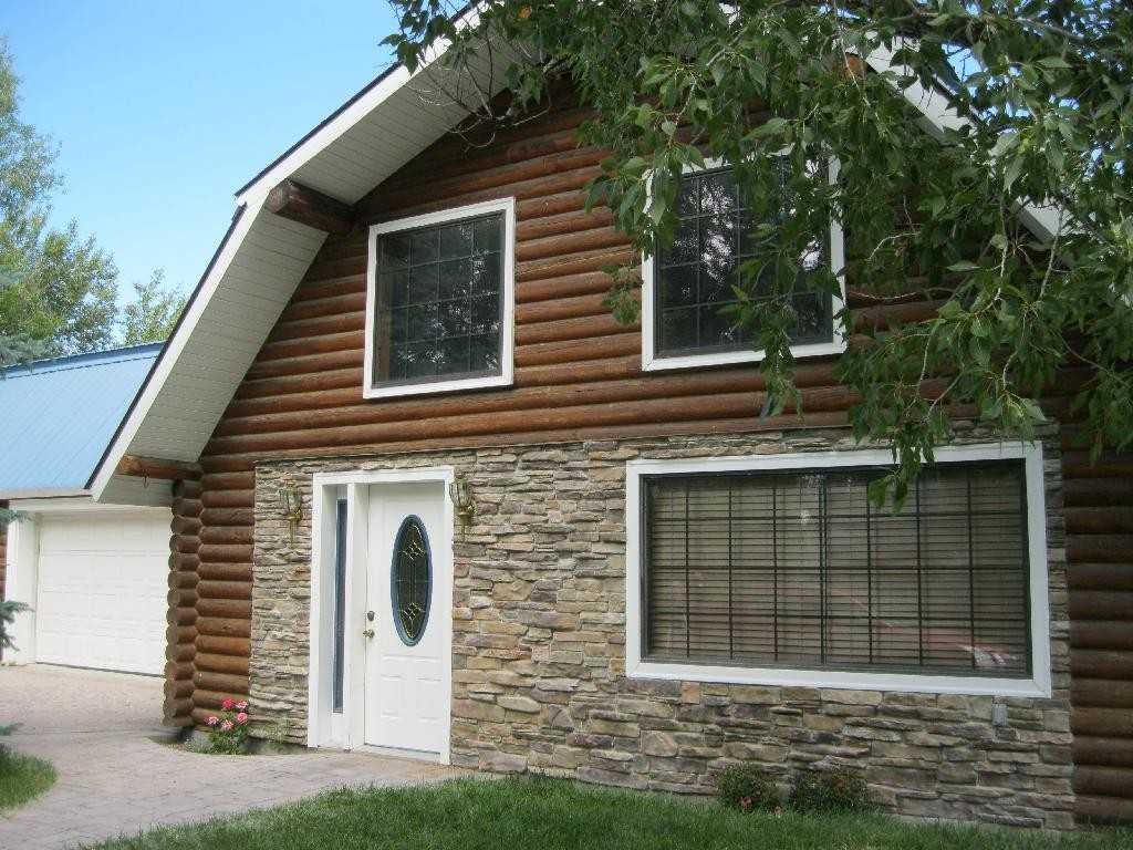 Beautiful log-cabin style home in tree-secluded neighborhood in country near Rigby. 5 bedrooms, 2 bathrooms, living room, family room, lots of space. On 2 acres of lawn, trees, pasture, a storage shed and other outbuildings. Pets considered. Call 208-351-5957 to see!