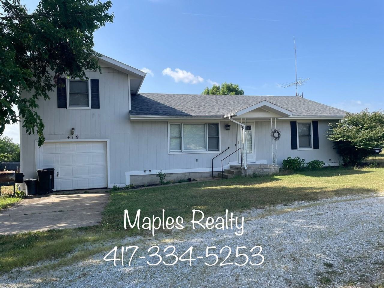 Introducing a charming 3 bedroom, 2 bathroom split-level home located in the peaceful town of Kirbyville, MO. This cozy home offers a country setting, perfect for those seeking a tranquil environment. With a single car garage and carport, there is ample space for parking and storage. Enjoy the serene surroundings and relax in the comfort of this lovely home. Upstairs you'll find the master bedroom and bathroom, two bedrooms and a bathroom on the main level, along with the kitchen, dining room, and laundry room. Enjoy quiet time on the 5-ish acres, nestled on the countryside just minutes from downtown, Branson MO. **PICTURES COMING SOON** This land is not fenced and not suitable for farm animals, but Fido and FeFe are welcome, with a pet deposit. *12 month lease required. *Tenant is responsible for electric & trash service, as well as proper yard maintenance. Water and sewer are included with rent. Contact Maples Realty today to schedule your showing! Phone ~ 417-334-LAKE(5253) Email ~ info@maples-realty.com Text ~ 231-225-0953 (reference Amaryllis) Maples Three, Inc., is not responsible for content found on third party websites. For accurate information please visit www maples-realty com