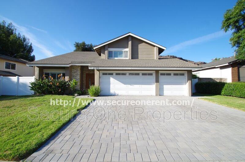 This beautifully upgraded 4 bedroom home is settled in the heart Wildwood in Thousand Oaks. The meticulously maintained home offers 1900 square feet of living space and it boasts pride of ownership with many special details and loads of curb appeal! It features dual pane windows throughout, freshly painted walls, updated driveway, custom front doors, wood-like flooring downstairs, shutters, peaceful and spacious backyard, updated kitchen, and so much more! Upon entering through the gorgeous front doors, there is a living room with high ceilings and a formal dining room. The kitchen has updated cabinetry, upgraded countertops with backsplash, stainless appliances, and a provided fridge. There is a breakfast bar off the kitchen and a patio door opening to the backyard. The family room is adjacent to the kitchen. There is a powder room downstairs and direct access to the 3-car garage is downstairs. All 4 bedrooms are upstairs. The primary bedroom has an attached private bathroom with 2 sinks, a shower/ tub combo, and a huge closet with custom built-ins. The Other 3 bedrooms share the hall bathroom, which has newer flooring and a shower/ tub combo. The fabulous and beautifully landscaped backyard has a covered patio area, newer concrete patio, 2 side yard areas, Saint Augustine grass, lush landscaping, and the basketball hoop is provided. This home has central heating and air and there are 2 separate systems for the upstairs and for the downstairs. The AC has an air purification filter. The washer/ dryer set are provided for the residents in the garage. There is an additional fridge provided for the residents in the garage. This home’s prime Wildwood location places it within the Award Winning Conejo Valley Unified School District. It is located within minutes from Wildwood hiking & biking trails, schools, grocery stores, and parks. This is a non-smoking property. Submit for a pet. No large dog, no puppy, and no aggressive breeds. Pet is subject to landlord approval with an additional pet deposit. Fireplace is decoration only and is not to be used, gas line is capped. Weekly landscaping service is provided.