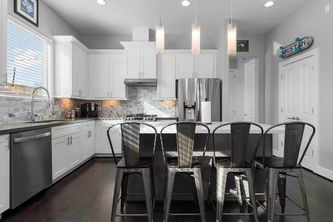 Welcome to 4302 Gillespie, Unit A—a beautifully designed modern home in the heart of East Downtown. This two-story residence features an open-concept floor plan with soaring ceilings, allowing the kitchen to overlook the spacious living room seamlessly. The kitchen offers timeless finishes, including stainless steel appliances, a gas range, quartz countertops, an island with a breakfast bar, and shaker-style cabinetry with ample storage. French doors open to a private patio and a fully fenced backyard. Upstairs, you’ll find the owner’s retreat along with two secondary bedrooms. The contemporary primary bathroom is tastefully appointed with quartz countertops, double sinks, a soaking tub, a separate shower, and a generous walk-in closet. Conveniently located minutes from the East River, shopping, and major highways, this home offers modern comfort and exceptional accessibility. A fantastic opportunity to lease a stylish home in one of Houston’s most central locations!