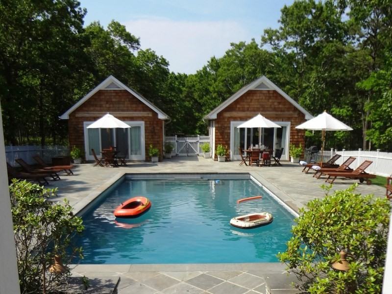 Set on a secluded 2.5 +/- acres in Water Mill North, with in-ground heated Gunite pool and two pool/guest houses, this just-renovated residence makes the most of its design, with main, open floor plan on the upper level, that includes a brand-new kitchen, open dining and living room with flat screen TV, and outdoor decks. Four bedrooms, including the master comprise the ground level, with two bathrooms. The finished lower level includes a play room, television viewing, and workout area with treadmill and weight machine. Two sets of washer dryers are included, one in the main residence, and the other in the pool house. The two pool house cottages each feature a bath; one featuring a kitchen and living area, and the other with two bedrooms. Extensive bluestone patios border area. Everything here is convenient both to villages and area beaches. Available Short Term July 7-14 and 17-22, 2016 only Other / Short Term - July Short Term Only - Ask for info: $20,000