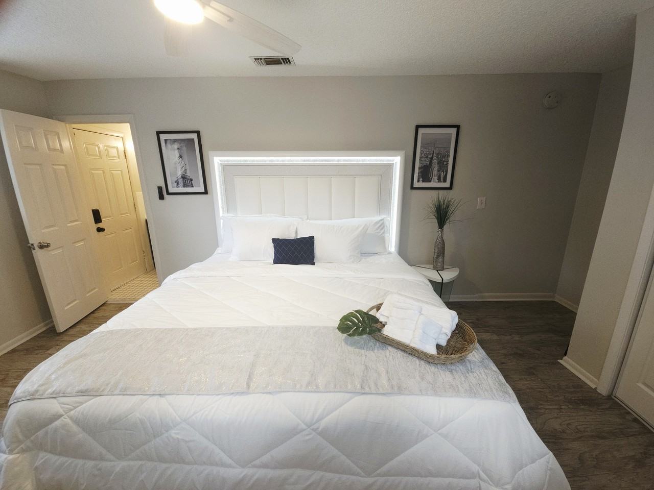This private, fully upgraded studio offers a perfect blend of comfort, privacy, and convenience in a prime location. Thoughtfully designed with modern features and a functional layout, it is ideal for individuals seeking a clean, quiet, and well-maintained living space. The studio includes a spacious king-size bed with LED accents, a private bathroom, built-in workspace, and a private entrance for added independence. Residents can also enjoy access to a furnished patio and pool, creating a relaxed and elevated living experience. Conveniently located near major hospitals, universities, shopping centers, grocery stores, parks, and Downtown Jacksonville. It is also close to Naval Air Station Jacksonville and Jacksonville Zoo and Gardens. Public transportation is easily accessible, with bus stops just steps away, making daily commuting simple and efficient.