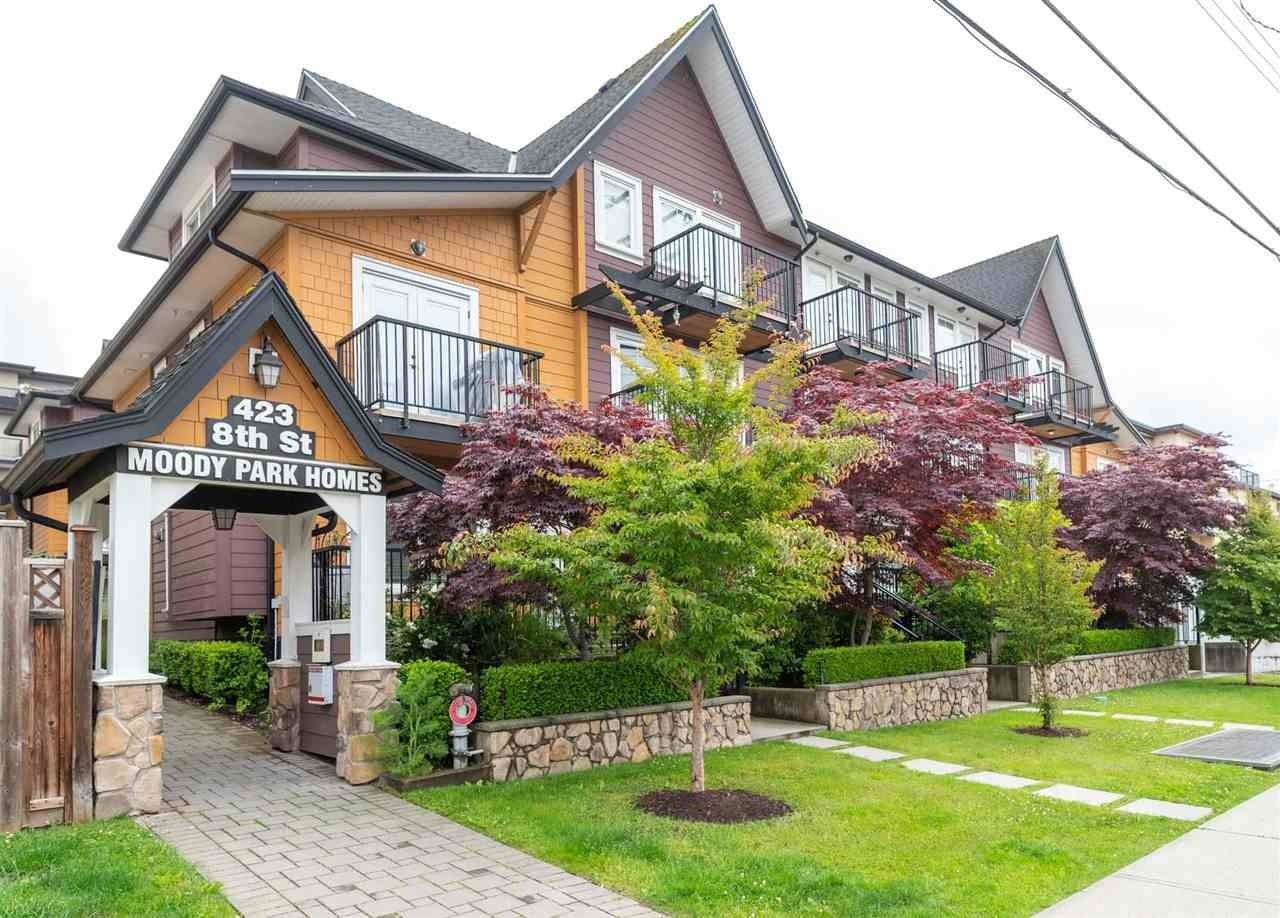 Two level townhouse. 2 beds & 2.5 bathrooms. This unit features a very open, functional layout on the main floor. Laminate flooring, stainless appliances, quartz counters, tile flooring in the kitchen. 2 pc bath on the main floor as well. Upstairs the master has vaulted ceilings, 2 closets & a 4 pc ensuite. 4 pc main bathroom. 1 parking spot. Steps from Daycare, Bus Stop, Sky Train, New Westminister High School and Shopping Mall.