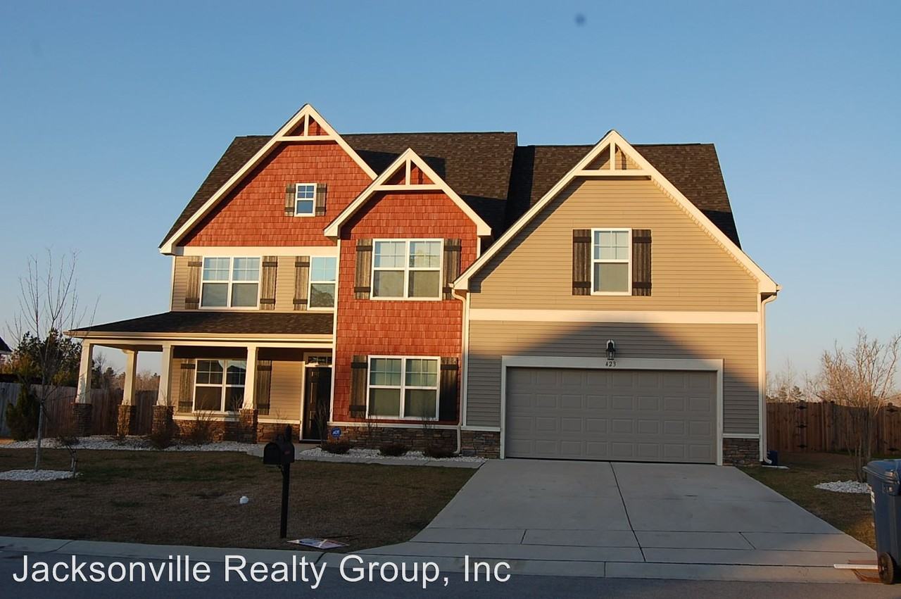 Spacious 5 bedroom 3 Bath Home in Towne Pointe - Come home to Towne Pointe! Walk into a two story foyer, formal Dining Room with decorative wainscoting and box beam ceiling, large Study with great lighting, and Living Room with gas log fireplace. The kitchen is a chef's dream-featuring granite counter tops, stainless steel appliances, pantry, large bar, breakfast area, and much more! Bedroom and Bath on the first floor convenient for guests! Upstairs you will find a loft area which overlooks the foyer, three bedrooms with cathedral ceilings and walk in closets, hall bath with plenty of space, and a large bonus room! Retreat to the spacious Master Bedroom featuring a trey ceiling, master bath with separate vanities, soaking tub, and separate shower. The Master Closet is remarkable- plenty of storage area for everything in your wardrobe! The laundry room is conveniently located off of the Master Closet. If that wasn't enough- backyard features a privacy fence and pergola for your parties and bbqs. Towne Pointe is a newer subdivision in Jacksonville NC, located 3 miles from Camp Lejeune. This community offers walking paths and athletic field. Club house and pool coming soon! Short commute to area shopping, schools, and local beaches. Make this your home today!