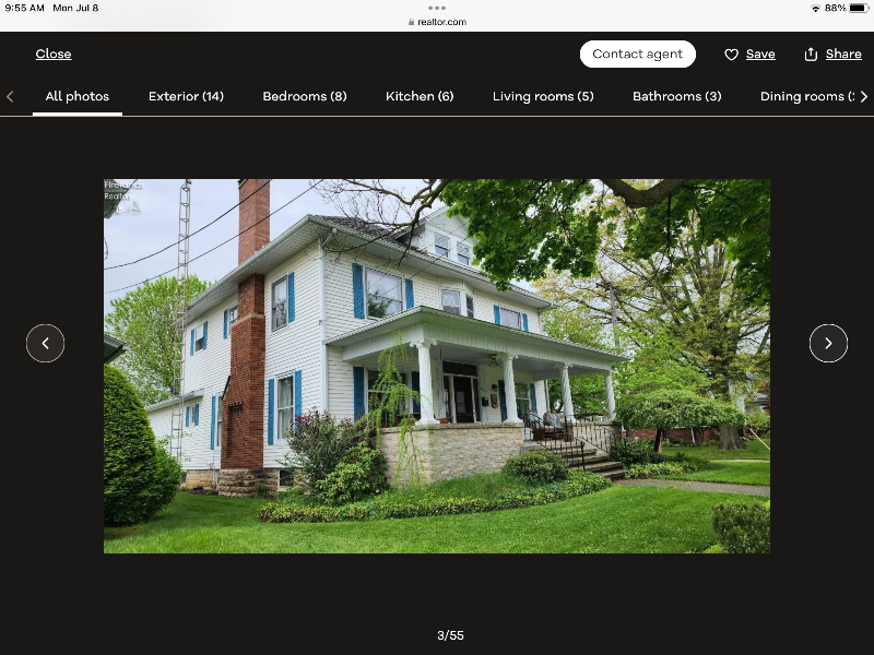 Property Id: 1599812 Beautiful turn of the century home with beautiful molding, leaded beveled glass windows, built in glass cabinets in living room and dining room, huge kitchen with travertine marble countertops, dining area with corner windows, large family room with built in cabinets. Vestibule, four large bedrooms with large closets, master bedroom and bath,walk up attic, outside entrance to basement that is finished and could be used for home office or game room. Bathroom in basement with stool, shower and sink. Kitchen sink and stove in basement. Large front porch private courtyard patio connecting house with a 24'x28' garage with a 18'x7' garage door. Large driveway with ample parking. Very nice neighborhood, close to all schools and a park down the street. This home is looking for a family who appreciates a nice home and will keep it up inside and out. The home is beautifully landscaped so maintenance will be required. Absolutely no smoking or pets inside the home.