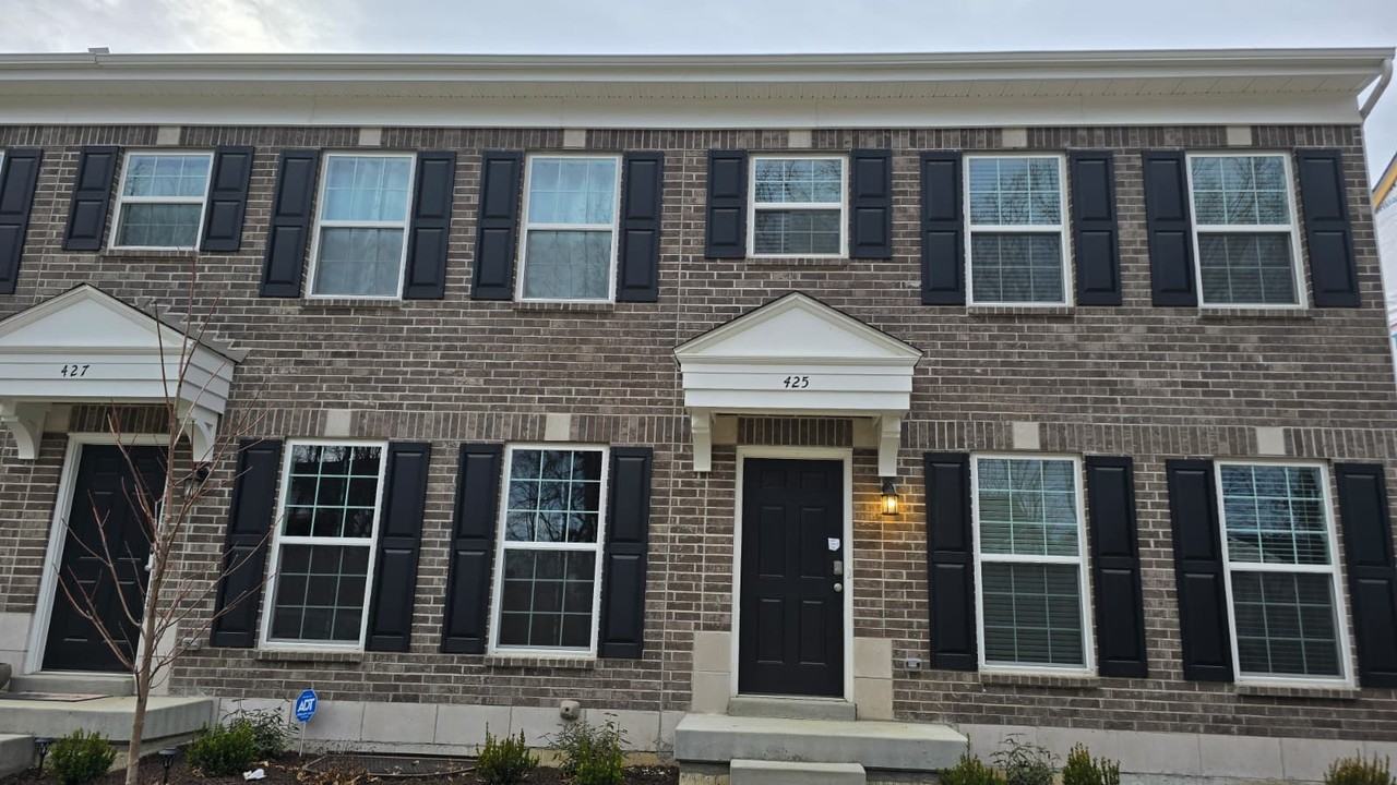 New McBride Homes row home with 2 bedrooms and 2.5 baths available now! This desirable end unit features an open floor plan with a bright, spacious living room, ceiling fan, and an extra window that fills the space with natural light. The kitchen offers an island with breakfast bar, 42" Benton Sarsaparilla cabinets, quartz countertops, and GE stainless steel appliances, plus a breakfast room with sliding doors. The main level also includes a powder room and wood laminate flooring throughout. Upstairs, you'll find two generously sized bedrooms with walk-in closets, a large loft, two full baths, a laundry area, and a linen closet. Additional highlights include a full basement and a rear-entry one-car garage. Harvest offers outstanding amenities such as a nature play area with water feature, 13+ acre town square and civic lawn, food truck court, orchards and pumpkin patch, community gardens, pickleball and bocce ball courts, playgrounds, trails, and more. Includes McBride Homes' 10-year builder warranty and exceptional customer service.