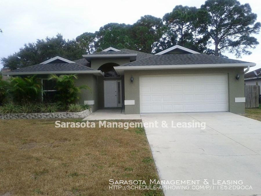 ---- SCHEDULE A SHOWING ONLINE AT: showmojo. com lt 11e52d90ca ---- Newer Home built in 2002 . 3 Bedrooms, 2 Baths in Lake Sarasota. High Ceilings with an open floor plan. Tile floors throughout living areas Carpet in the bedrooms. , Stainless Appliances in the kitchen which includes a breakfast bar penninsula., Screened Lanai. Split Plan, Eat in Kitchen, 2 Car Garage, Fenced Yard in back . Lawn care and pest control included in the monthly rental.. Bee Ridge Road east of Intestate, turn South on Mauna Loa Boulevard, turn right on Samoa Drive then turn right on Molokai Drive. Annual Lease Carpet Ceramic Tile Disposal Fence First Floor Master Range Screened Porch Walk In Closet(S) Washer / Dryer Hookups Provided by Listanza ID 23191904