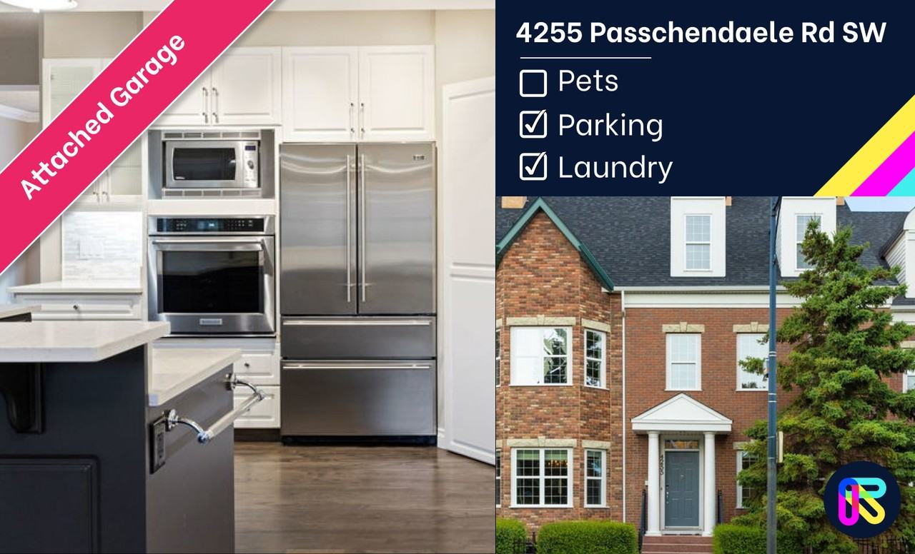 AMAZING 4 BEDS/ 2.5 BATHS TOWNHOUSE VIDEO TOUR: https rum-punch-media-inc aryeo com sites 4255-passchendaele-rd-sw-calgary-ab-t2t-6a9-11373544 branded Interested in this unit? BOOK HERE: https showmojo com 79c3e9f0b2 l Our automated booking system called ShowMojo will contact you within a few hours with possible showing times and dates. NOTE: Showings are in a group and not One on One INFORMATION: - Utilities Included: No Utilities Included - Utilities NOT Included: Heat, Water, Electricity, Internet & Cable - Parking: Detached Garage - Pets: No Pets Allowed - Smoking: Non-Smoking - Storage Included: No UNIT FEATURES: Bedroom Features: - Main bedroom features a walk-in closet & Attached full bathroom - Secondary bedroom features a walk-in closet - Third bedroom has window and closet - All bedrooms have large Windows & Window coverings, Kitchen Features: - Open concept kitchen - Kitchen Island - Pantry - Garburator - Plenty of cabinet storage - soft closing cabinets - Stainless steel appliances - Dining room space - Granite countertops - Double Sink Living Room Features: - Balcony Access - Gas Fireplace - Window Coverings included - Large Space - Large windows - Shelves - High Ceilings - Cabinets - Backyard Access Basement Features: - Fully Developed Basement Exterior Features: - Snow/Lawn Care Included - Large patio COMMUNITY FEATURES: Walking distance from shopping & groceries, tennis courts, located near bus & train, park, short distance to bike paths, river & playgrounds This property is professionally managed by Ripple Property Management (Powered by RE/MAX Commercial Properties) View more properties by Ripple Property Management.