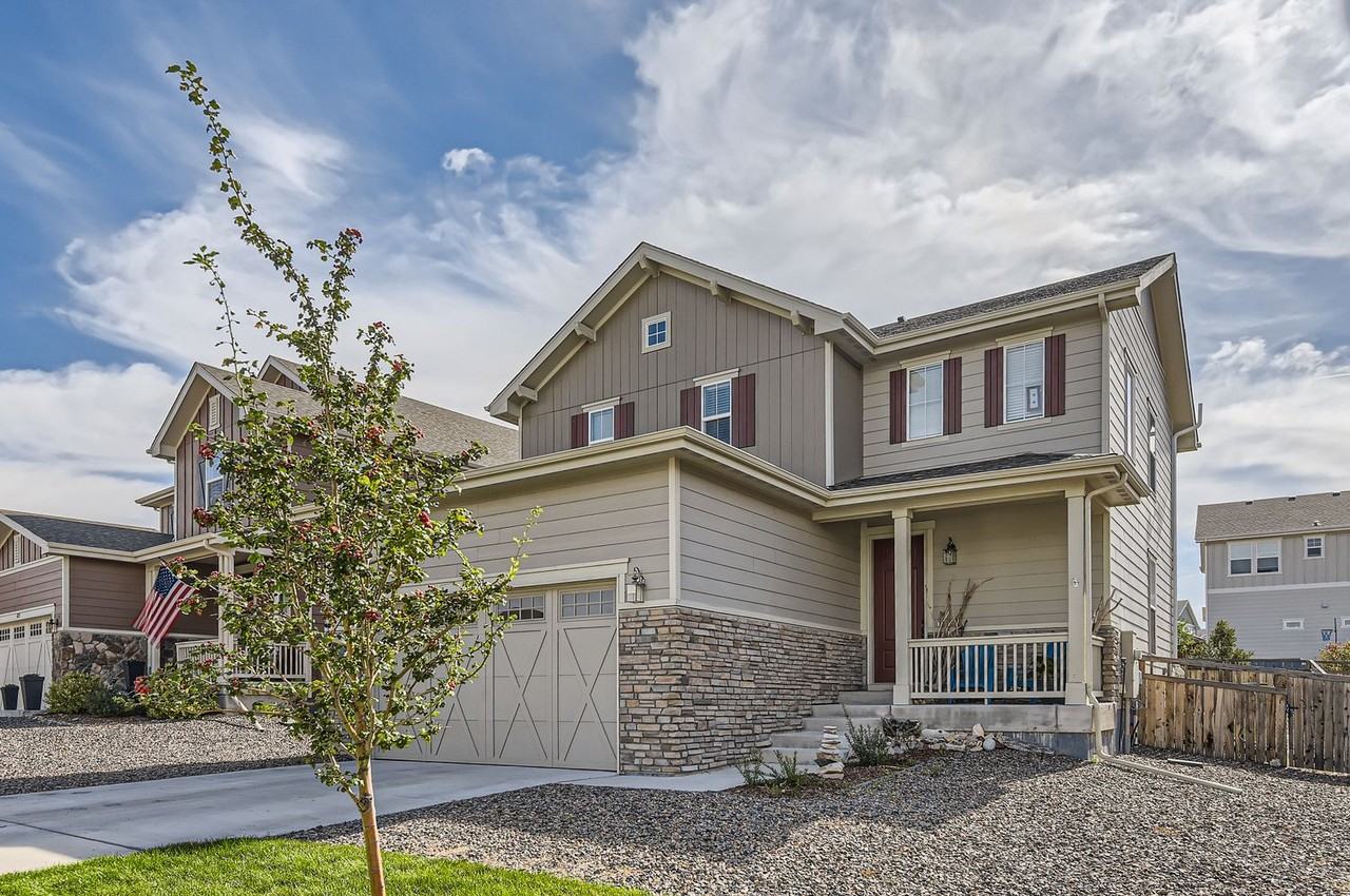 Everything is sparkling in this light, open-concept house in the recently developed Castle Rock neighborhood, Panorama in the much sought-after Meadows community. Open, inviting design with A/C, and main level modern, gray luxury plank flooring. Walk-in from the garage to your large mud room, bathroom, and kitchen. Your new, white, sparkling kitchen has a large pantry, gas range/hood and large quartz island. Enjoy talking to your friends and family in the open kitchen, dining and living room design. Head towards the front door with a spot for a bench and hooks. Head up the stairs, with windows boasting tons of light and mountain views as you enter the large, open hallway. The primary suite is on your right with a sit-down stall shower, two sinks, linen closet, and a large walk-in closet. From there, enjoy the large upstairs laundry, and two more bedrooms and another full bathroom. There is also a full unfinished basement for storage, and additional space. The yard is fully landscaped with sprinklers in the front and back. This home has modern, energy efficient construction helping keep utility bills low. Sit on your front porch and enjoy your neighbors or take a walk around your neighborhood, it's got a great feel and the mountain views are fantastic. Your street is a minute's walk to the Native Legend paved trail system. Two minute walk to Butterfield Park where you have an outdoor workout gym, soccer fields, baseball diamonds, massive childrens' playground, and Tennis, Pickleball, and Basketball Courts as well a Town Pool. I-25 North/South access, Outlet Mall, restaurants and shopping within a five minute drive. Ideal all the way around. Two entrances to the paved Native Legend Trail, and across the street from Butterfield Park. Owner pays for trash and access to the Grange pool. You will love all of the fabulous Douglas County schools to choose from as well! Castle Rock is a fabulous, community oriented town - events every weekend - and so easy to enjoy.