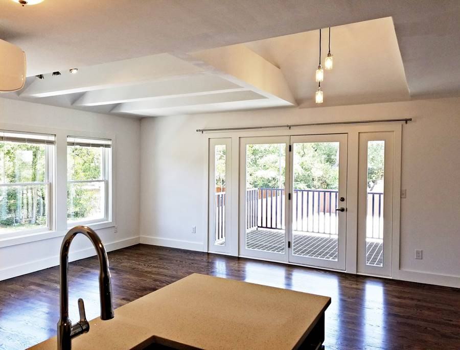 - Wide-plank hardwood flooring