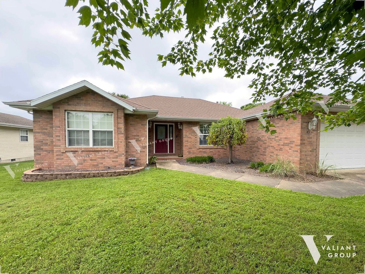 Welcome to this spacious and inviting 3-bedroom, 2-bathroom home, perfectly situated just east of Springfield. Built in 2001, this 1896 sq ft residence offers comfortable living with desirable features. Step inside from the covered front porch into a welcoming foyer. The home boasts two distinct living areas, providing ample space for relaxation and entertaining. The first living area is bathed in natural light from a large, east-facing picture window. The second living space features a vaulted ceiling, a cozy gas fireplace, and double French doors that open to a private wooden deck, ideal for indoor-outdoor living. The heart of the home is the well-appointed kitchen, offering a large dining area with a charming bay window. The U-shaped kitchen showcases beautiful natural wood cabinetry, granite countertops, and spacious upper cabinets for all your storage needs. It comes equipped with a full suite of stainless steel appliances, including a dishwasher, microwave, stove, and oven. Conveniently located off the kitchen is a laundry room with washer/dryer hookups, a walk-in pantry, and direct access to the two-car garage. Down the hall, you'll find three comfortable bedrooms, each featuring plush carpeting, ceiling fans, and generous closets. The shared bathroom offers a long vanity with ample counter and cabinet space, plus a bathtub/shower combo. Additional storage is plentiful with two hallway coat closets and a linen closet. The primary bedroom is a serene retreat with an extra large west-facing windows, a ceiling fan, and a walk-in closet. Its private en-suite bathroom boasts a convenient walk-in shower. Outside, the fully fenced backyard provides privacy and space for outdoor activities, complemented by the private wooden deck, perfect for entertaining or enjoying your morning coffee. Located east of South Farm Road 197, this home offers easy access to amenities, with the closest major intersection being HWY 65 and East Sunshine Street. *Please note that furnishings are used as examples only. House comes unfurnished. Pet-friendly property, two pets max; restrictions apply. Applicants must meet the following rental requirements: (1) Household income must be at least 2.75 times the monthly rent. (2) No evictions within the last 5 years. (3) A minimum credit score of 600 (a score of 550-599 may be approved at the property manager’s discretion and double deposit is required) (4) Pass a background check.