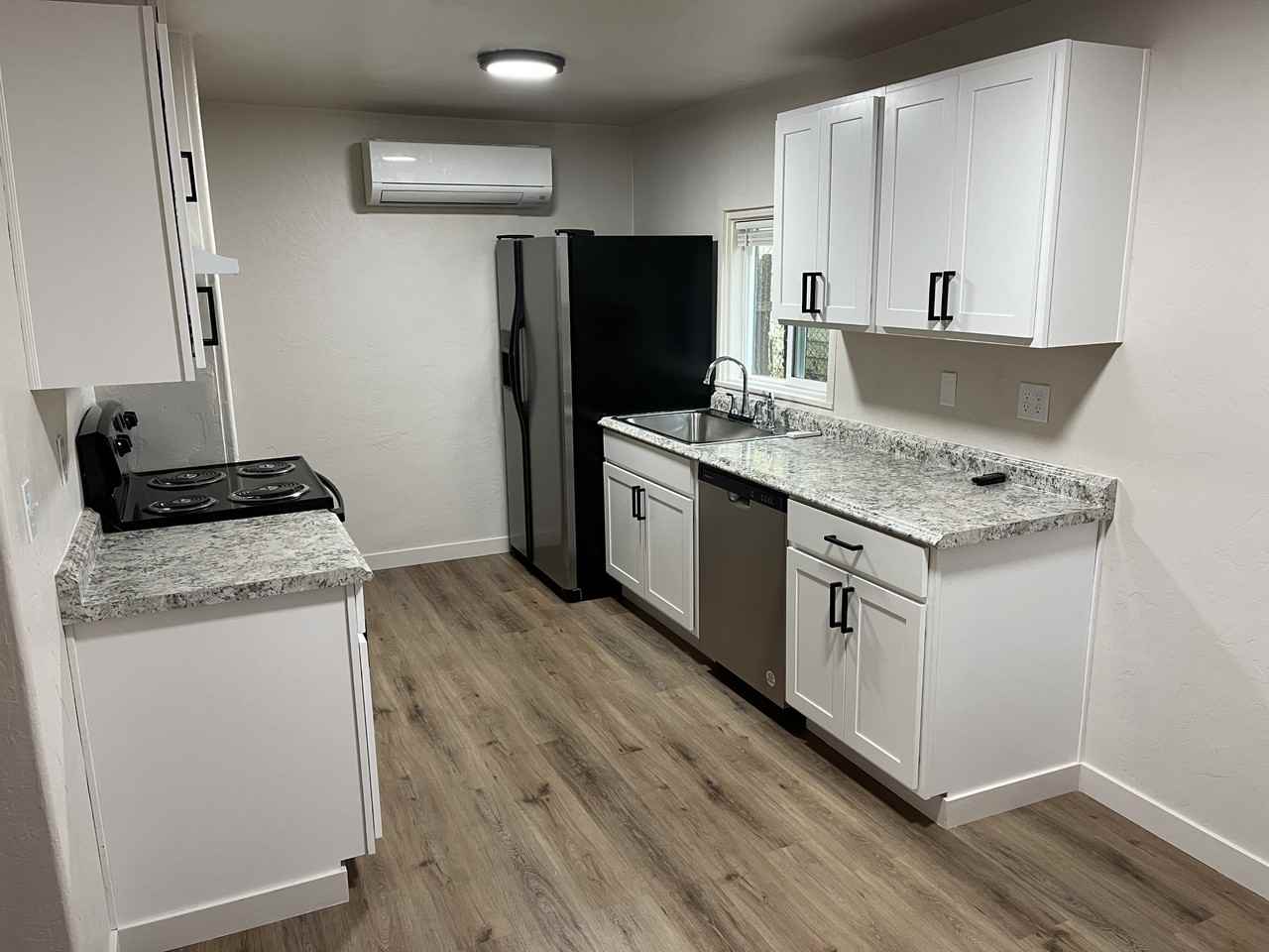 Freshly remodeled 1/1 house including brand new cabinets, countertops, appliances, flooring, paint, mini split air conditioning/heating, the works. Very private access in a quiet area with covered front porch, and within walking distance to local coffee shops, grocery stores, etc. No laundry hookups on site. Available 12/11/23
