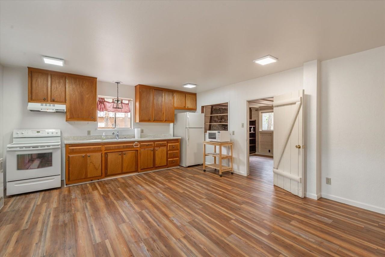 Adorable single family cabin in pristine and private Pino Grande neighborhood. Open forest with a lively creek just steps from your front door. Home has new wall-to-wall laminate throughout as well as fresh paint and a recently remodeled bathroom. The kitchen is good-sized with eat-in-dining and the essential appliance one would need to make a supreme meal. The living room is off the kitchen and faces the quiet backyard. River rock stone fireplace brings to life that true cabin vibe. There is a pellet stove but Tenant must be responsible for all maintenance if used. Home has electric baseboard heat and a natural gas wall furnace as well. There's one large bedroom that overlooks the backyard. The updated bathroom has an oversized shower and is also home to a state-of the-art LG front-load washer & dryer. Home is on a huge plot of land and has a fantastic, covered porch/front deck. Plenty of parking. Bear box. Idyllic neighborhood just yards from the beach. Please note that the other building that shares a driveway with the cabin (shown in photos to the left of cabin) is NOT included in the rental but is not occupied. RENT: $2,250/month FLEXIBLE TERM: 5 to 12-month Renewable Lease AVAILABLE: Mid-March 2025 DEPOSIT: Equal to two month's rent. MOVE-IN COSTS: • Holding fee required upfront, with application to take the home off of the market. • Deposit due upon approval at lease signing. • Full month's rent & utilities due at move-in. • 2nd month prorated if move-in date is not on the 1st day of the month. UTILITIES: Tenant is responsible for all utilities. • Gas (SW Gas) paid directly to service provider • Electricity (Liberty Utilities) paid directly to service provider • Non-essential utilities such as internet and cable may be set up at tenant's discretion and paid directly to service provider. • Water (NTPUD) - Tenant to reimburse owner monthly along with the rent. Estimated monthly cost $135 • Trash (Tahoe Truckee Sierra Disposal) - Tenant to reimburse Owner for trash along with the rent. Option for 1 can ($30/month) or 2 cans ($40/month) picked up each week. • Snowplow Contract - Tenant to responsible for all snow removal on the ground level. Owner shall pay the following costs: • NONE PETS: Dog(s) OK. See Agent for fees, limits and other restrictions. No cats. OTHER: • This property is UNFURNISHED • NO SMOKING • Free off-street parking for 3-4 vehicles. • Tenant is responsible for supplies for and maintenance of pellet stove (If used). SHOWINGS: By appointment starting Wednesday, February 26th. Reference Property #507