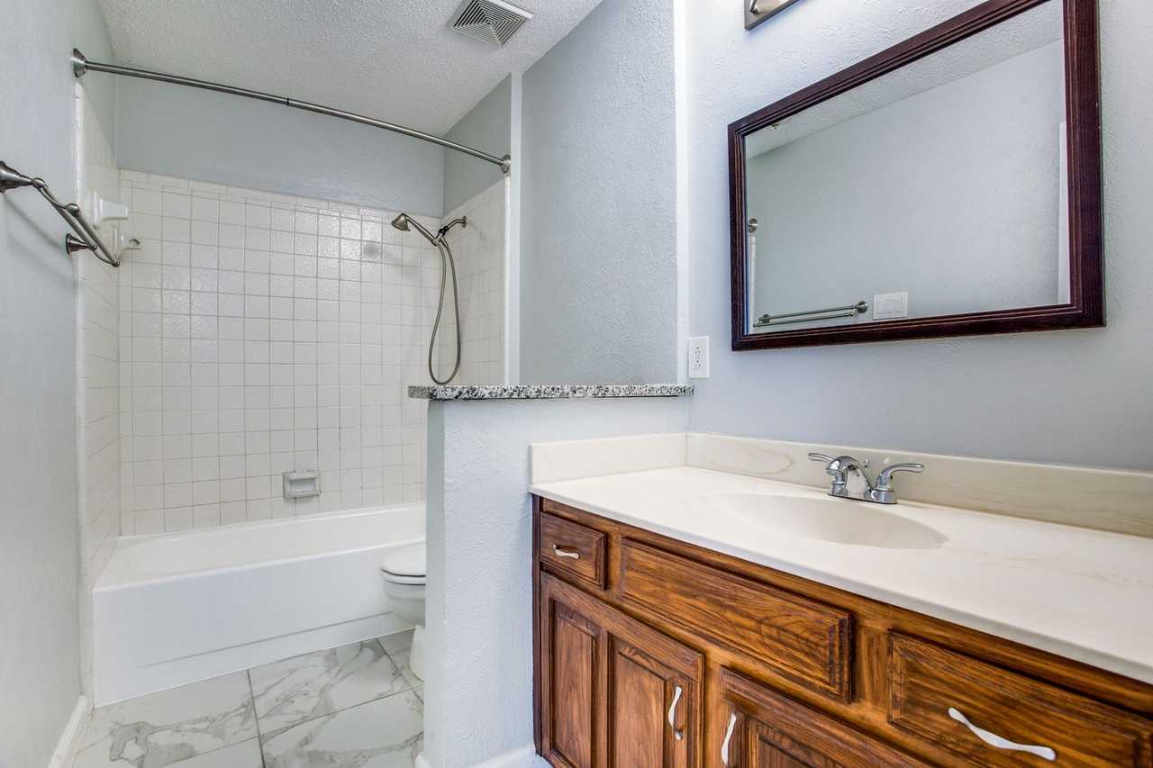 A homey, 2 bedroom condo with a detached 2-car garage boasts some great amenities in this quaint living community in Garland! The modern kitchen is equipped with stainless steel appliances, including refrigerator, built-in microwave, and a stove/oven. The faux hardwood & tile flooring throughout adds a touch of elegance that must not be overlooked. Both bedrooms & bathrooms are towards the back of the home with the laundry room closet conveniently located next to them. The kitchen, living, and door to private patio all come together for a layout to entertain guests. The 2-car garage is on the other side of the patio equipped with built-in shelving to help organize any outdoor storage items. This condo offers amenities such as walking trails, basketball courts, pools and a clubhouse. On the corner of Plano & Buckingham Road, there are many parks nearby as well as Richardson Square where you will find a handful of restaurants. Follow the link to schedule your showing —>