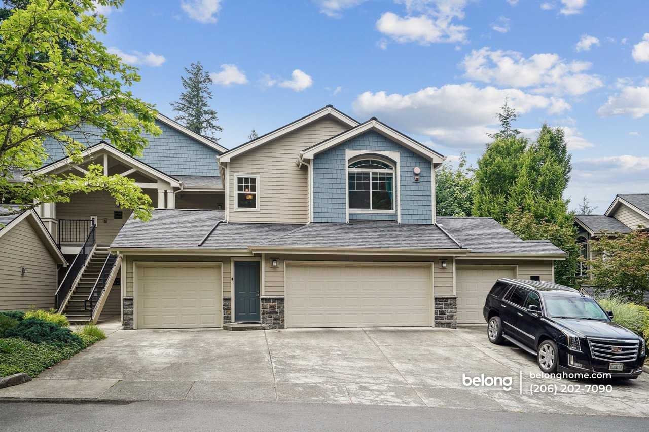 Vaulted ceilings, tree-lined views, and a layout with two ensuite bedrooms give this Sammamish condo a smart balance of comfort and flexibility. Natural light pours across the open living, dining, and kitchen areas, where a sleek peninsula bar, richly toned cabinetry, and elegant pendant lights create a welcoming everyday space. Stainless steel appliances, undercabinet lighting, and generous counter space make the kitchen as functional as it is stylish. Your living area includes plush carpeting, a ceiling fan for year-round comfort, and a decorative fireplace framed by an arched media alcove. A glass door leads to your private balcony—perfect for sipping coffee or just soaking in the greenery that surrounds you. In the primary bedroom, an arched window, ceiling fan, and corner fireplace lend character and warmth. There’s also an ensuite bath with dual sinks and a soaking tub, plus a walk-in closet with built-in shelving just steps away. Both secondary bedrooms have custom closet setups and private balcony access. Additional highlights include a Ring security system with cameras and alarms for extra peace of mind. Set within the Klahanie neighborhood and close to Pine Lake Village, this location puts groceries, parks, and dining within easy reach. It’s conveniently near the main road and all your day-to-day amenities, yet tucked away enough to offer nature and privacy. You’ll be part of a very quiet and friendly community, with two walking trails just three minutes away and a local pea patch that serves as both a gardener’s haven and a wonderful space to connect with neighbors. *Fireplace is for decorative use only and cannot be used without consent from Belong. *Our homes come as-is with all essentials in working order. Want upgrades? Request it through the Belong app, and our trusted pros will take care of the rest!