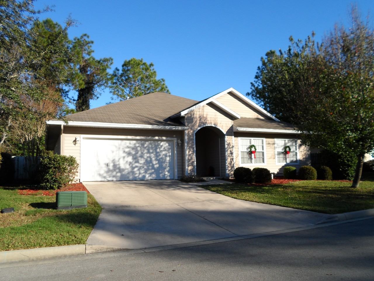 Cathedral ceilings; large open living space; french doors to Florida Room which overlooks privacy fenced backyard; wood laminate floors in main living area; carpeted bedrooms; two car garage; laundry room off kitchen