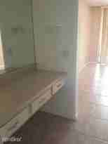 The property features a modern kitchen with new cabinets and a completely renovated apartment. Notable amenities include a community pool, utilities included in rent, and a generous walk-in closet. It also provides an ideal environment for remote work, highlighted by high-speed internet access, ample natural light from large windows, and a quiet setting with minimal noise pollution.