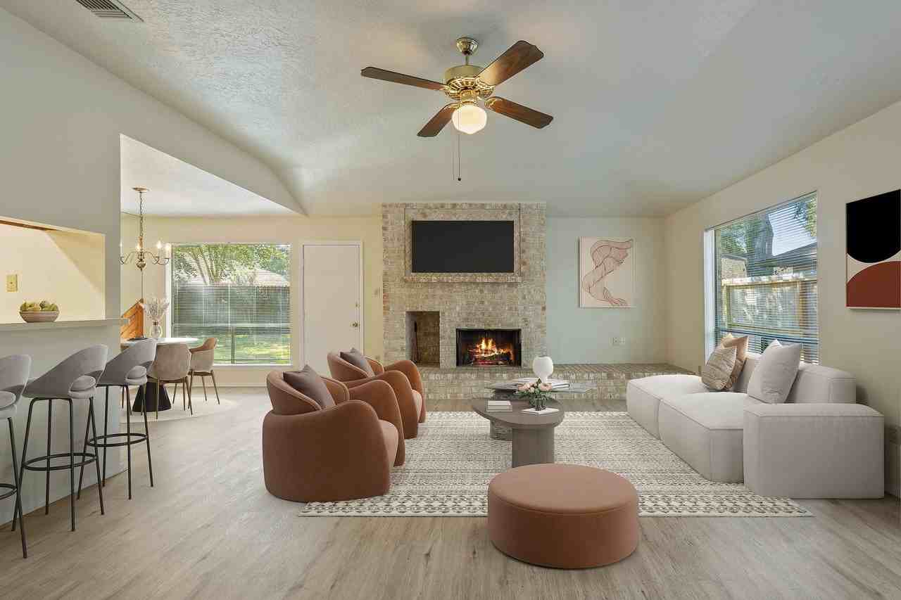 WELCOME HOME! This floorplan is practical & convenient! Upon entry you are greeted with an abundance of natural light! There are large windows in everyroom which compliment your neutral color pallette! There is Vinyl Flooring and tile throughout the home. The living room is oversized with a showstopping fireplace! There is a formal dining room, which could easily be an office space or playroom! The kitchen has a breakfast bar overlooking your living room and is large enough to accommodate a breakfast table! Microwave is being installed above the range!The primary suite has a huge walk-in closet and sizeable vanity! There are two secondary bedrooms each with nice closet space and ceiling fans! You will love living in the well-established Bridgestone Community with a community pool, park, sidewalks, & tennis courts! Located minutes from FM2920, grocery, I45, medical, & the 99! Also zoned to the highly acclaimed KLEIN ISD & connects to the new Bridgestone Park. Schedule your tour today!