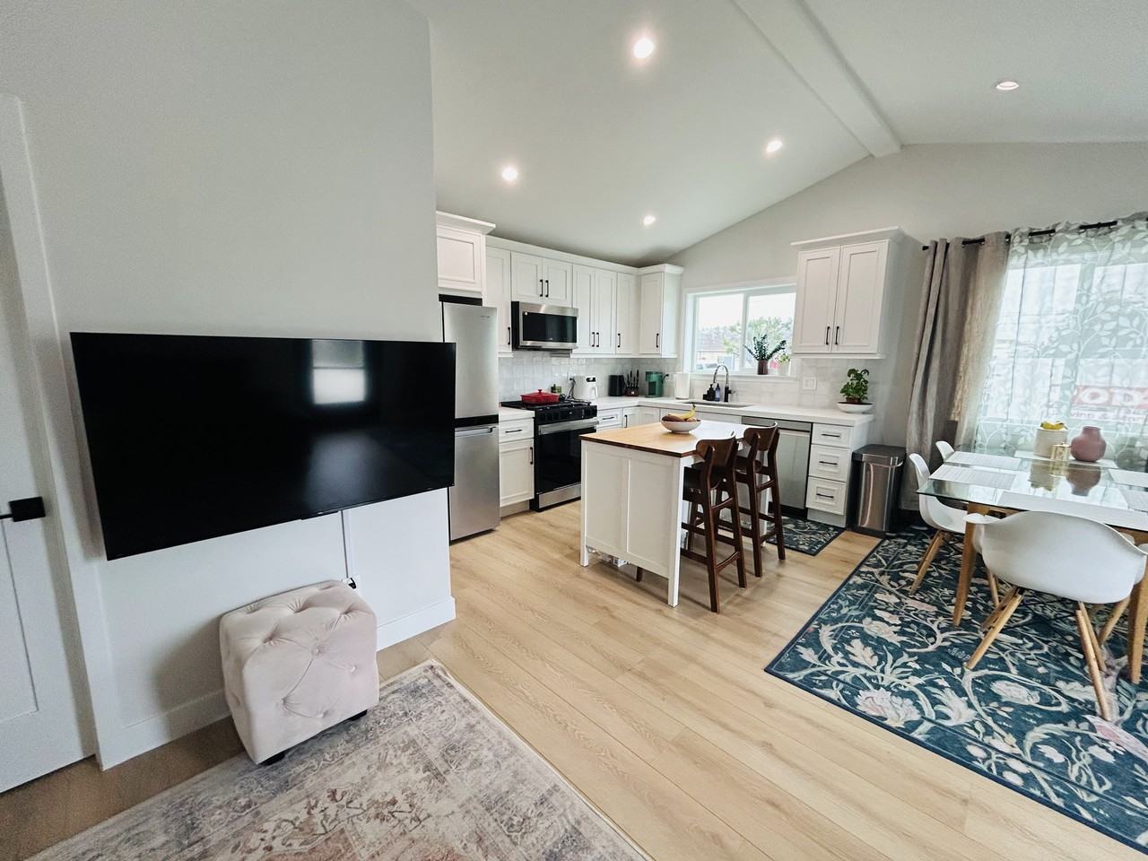 Fully-Furnished, Hillside Village, Executive Haven - "Beverly Hills of the Eastside" 2bd/1ba Modern Luxury L.A. Casita • Parking: 3-4 driveway spaces with free street parking • Accessibility: Easy access with only two (2) steps to enter the home • Quartz counters; chef's kitchen w/stainless appliances; designer furnishings; luxury floors • Keyless entry, exterior security system, 3-4-car driveway w/free street parking • Security Deposit: $0 via Obligo or 1 month's rent. • Application fee: $0. • Flexible Move-Out Option: Tenant can end lease early at any time. Ask about it. • Lease Price Lock Guarantee. • Near hospitals/transit/recreation • Fiber wired internet/WiFi • 5 medical facilities within 1.5 mi • 15 min to downtown • Fully-permitted, earthquake-retrofit • No smoking/vaping: Strict • OCCUPANCY: Maximum 5 residents per local building/fire safety codes • Pet Policy: Allergy-friendly - no animals (strict, to provide reasonable accommodations for occupants with severe, disabling allergies) VIRTUALLY NEW CONSTRUCTION: • Unlike typical renovations in LA: Fully-permitted/inspected comprehensive renovation • New systems and finishes (windows, copper plumbing, electrical, HVAC) • New flooring, cabinetry, paint, doors, trim, stucco • Permitted quality provides peace of mind • Avoids unpermitted/unsafe conditions common in LA market PRESTIGE AND SAFETY: • Located in historic Hillside Village • Presidential: Distinguished neighborhood once hosted President Jimmy Carter • Perfect blend of prestige and tranquility • Earthquake retrofitting for superior seismic protection • Critical safety features rarely found in Los Angeles homes PREMIUM KITCHEN APPLIANCES: • Range/oven/stove, gas/electric, Samsung Bespoke 6.0-cu.ft., 5 gas burners • Refrigerator with freezer, Whirlpool 19 4-cu ft • Microwave, Samsung, 2.1-cu. ft. • Dishwasher, Samsung, 48-dBA whisper quiet, 14-place-setting capacity • Washer & dryer, LG 4 5-cu ft large clothes washer and 7 4-cu ft dryer • Disposal, 1/2-Hp Moen LUXURY AMENITIES: • Parking: 3-4 driveway spaces with free street parking • Premium quartz countertops • Luxury vinyl flooring throughout • Le Creuset artisanal cookware • Pottery Barn, Crate & Barrel, Zwilling, West Elm, Dyson furnishings • Energy-efficient double-pane windows • Smoke and carbon monoxide detectors (safe/fully permitted) • Dining space for nine (9) adults (table: six (6) + counter: three (3)) ENTERTAINMENT & WORKSPACE: • 55" living room Smart TV • High-speed fiber internet/WiFi SECURITY/SAFETY FEATURES: • Security system: 5-cameras, exterior-only • Motion-activated exterior lighting • Keyless entry system • Corner lot advantage • Complete earthquake reinforcement meeting or exceeding building codes UTILITIES/SERVICES INCLUDED: • High-speed fiber/WiFi internet • Water and hot water • Professional exterior landscaping maintenance • Trash removal and sewage MEDICAL HUB: 0.3 mi: Los Angeles Medical Center 0.7 mi: Pacific Alliance Medical Center 1.4 mi: USC Keck Medical School 1.3 mi: Good Samaritan Hospital 1.5 mi: White Memorial Medical Center AREA ENHANCEMENTS: • Part of a projected $80M Valley Boulevard enhancement project featuring: • New protected bike lanes • Enhanced pedestrian lighting • 1,800 new trees • Lincoln Park expansion • Cultural landmark preservation NEARBY AMENITIES: 0.6 mi: Lincoln Park: