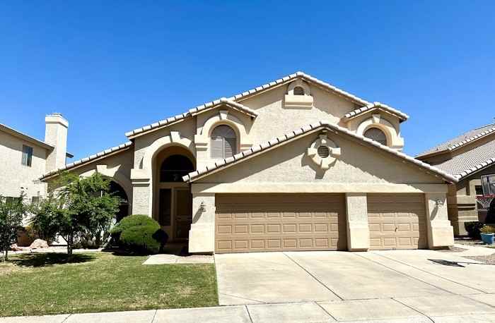 Walk into serenity in this Park Promenade Jewel. Front of the home looks onto the Kyrene Aprende Fields. Double story entry greets you as well as the soaring ceilings of the formal living & dining rooms. Center island kitchen & cozy breakfast nook. Large family room with fireplace is amazing and can fit large furniture. Full bedroom (with double door entry) & full bath downstairs. Stunning staircase leads to the additional bedrooms & baths. Master features double door entry & relaxing bathroom with double sinks, separate tub & stall shower. Huge walk in closet is an added bonus. Large balcony off of master. 3 additional bedrooms and a full bath complete the upstairs. The back yard is a dream with huge grass play area and fenced pool. Credit under 600 pays 1.5 times rent as security deposit Email agent for status. $40 credit/person over 18. Pets on approval. $200 initial admin fee, $300 cleaning fee and $300 Pet fee if approved. 2% per month monthly admin fee. Apply & pay for credit at www.rch-az.com, click ''tenant services'' then ''apply now ' This property allows self guided viewing without an appointment. Contact for details.