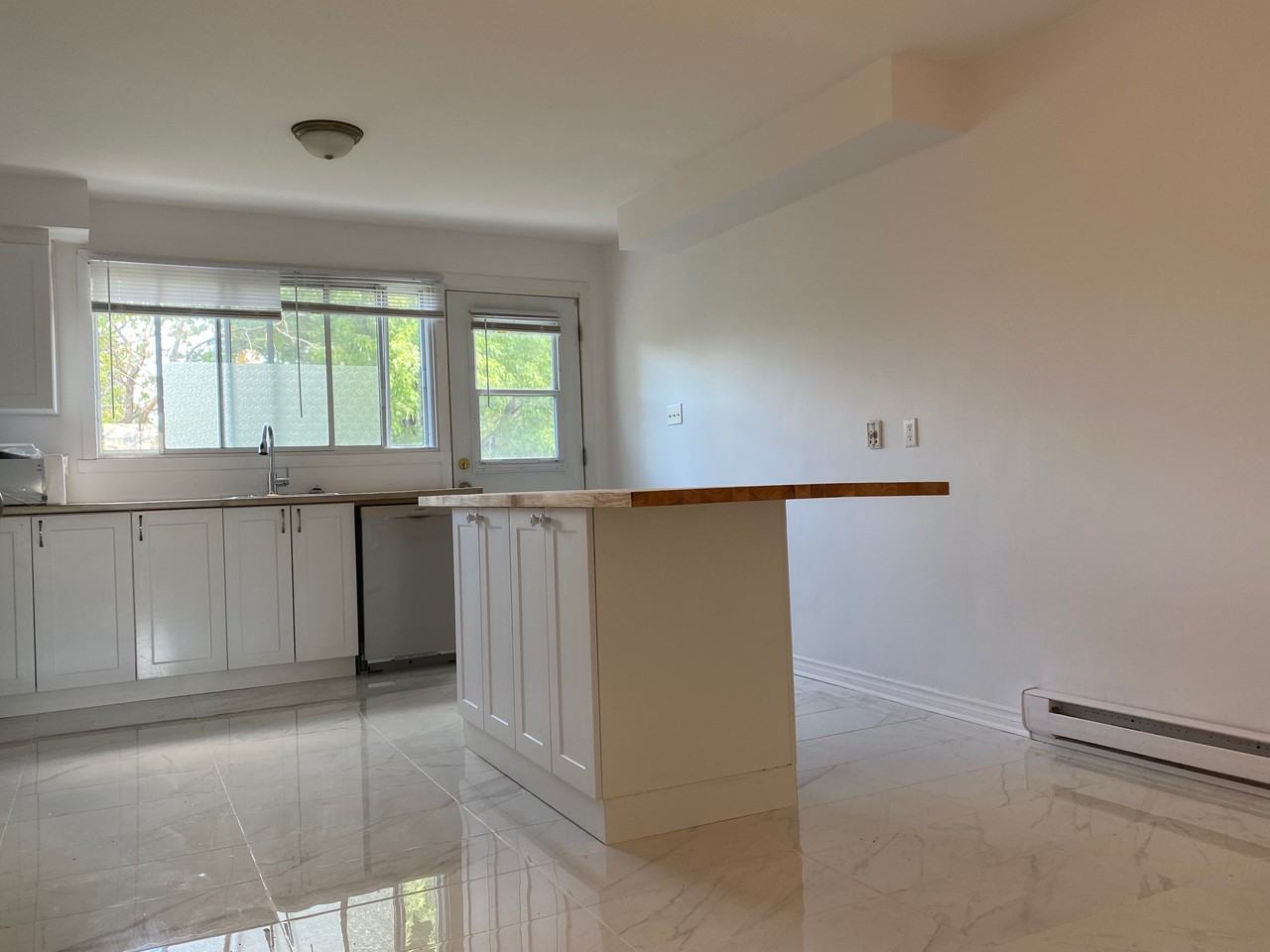 Spacious 4-1/2 apartment in a quiet, clean 6-plex building located in Longueil. It's on third floor. Renovated bathroom with brand new bathtub, 42" vanity, medicine cabinet. Renovated kitchen with brand new cabinets, wood-top movable island and ceramic floor. Livng room and two bedroom are with nice wood floor. You will enjoy >=160sqf front and back bedroom, ~190sqf living room, and 190 sqf kitchen with a brand new dish washer and a ~12sqf walk-in storage room, front and back balcony, plus a free assigned parking and a large backyard. The bus stop for 23, 123 and 170 is right at the corner of the street. 3~5mins driving to Taschereau Boul, Commercial Center, Grocery stores, and Schools, etc.... I design this for a responsible, quite, non-smoke, no pet professional or with his/her family. Credit report is required. It is available for August 1. Please send text message to 514.677.8268 to schedule for visit or for more information. The rent dose not include the appliances. A whole new set of frig with French door, Front-control stove, Front-load washer and dryer at $152/mth.
