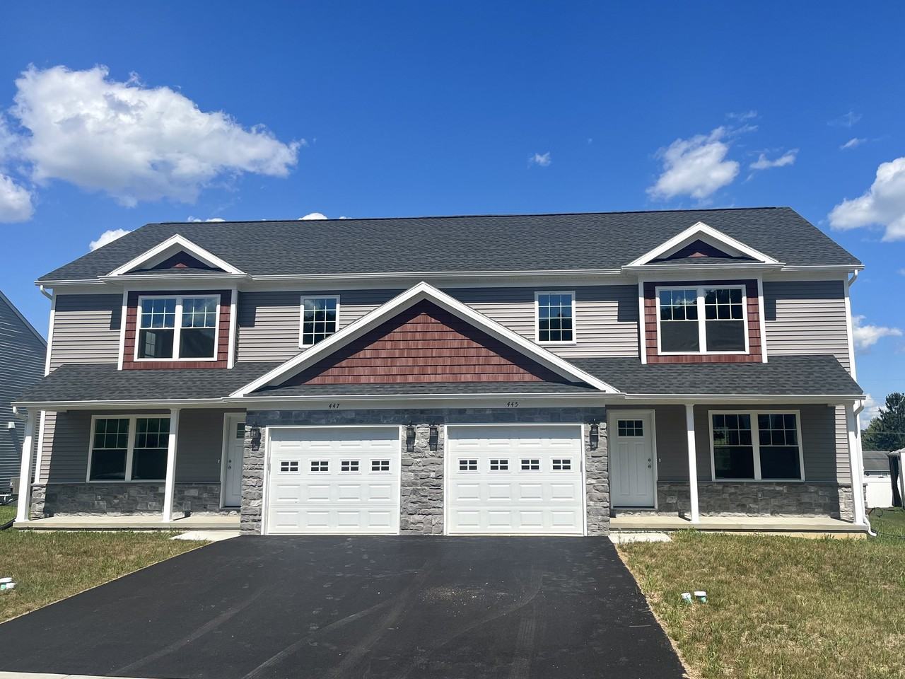 Just completed, very nice duplex in quiet neighborhood. Included is an unfinished basement , and 1 car attached garage. No pets/smoking.