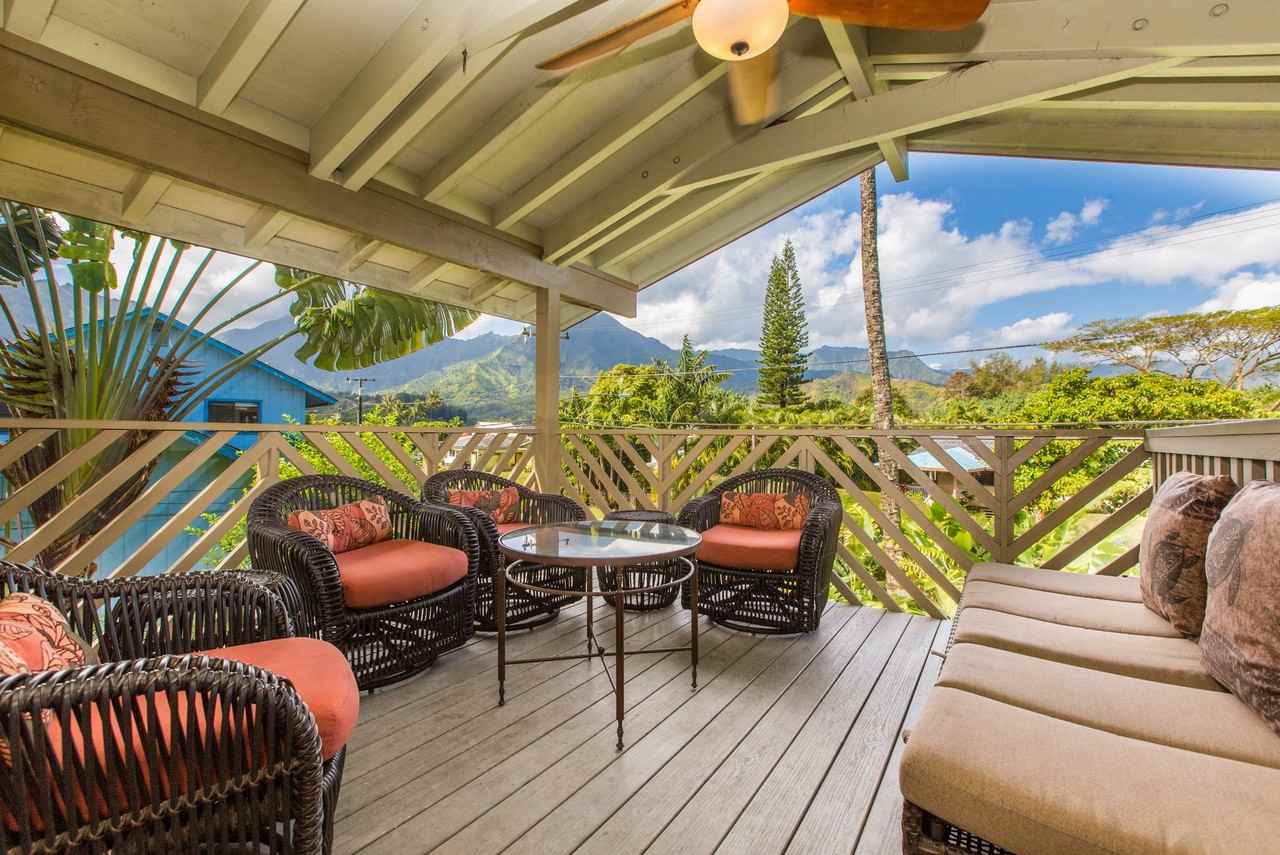 This 3 bed/3 bath home is conveniently located steps away from the heart of Hanalei. The Bird’s Nest is the perfect vacation spot for families. The home is within half a block to the beach or Hanalei town, with shops and activities to keep everyone entertained. Take a stroll to farmer’s markets on Tuesdays and Saturdays, coffee cafe, fresh fish and sushi bars. There are yoga studios, health food and grocery stores and of course, the most beautiful beach in the world, Hanalei Bay. With its seasonal surfing, boating, kayaking, canoeing, swimming and snorkeling. Lifeguard, pavilion and conveniences are all nearby. The addition of 2 more outdoor rooms on the beautifully built new lanai make you feel like you are living in a birds nest. You can spend the whole day enjoying the breathtaking views of waterfalls and sunsets, and dine outdoors on the comfortable and spacious covered lanai. There is a custom built outdoor shower of bamboo and rock, which makes you feel like you are taking a shower in a garden, there is nothing quite like it for feeling refreshed and renewed. The home is tastefully decorated from the owners private art collection. The upstairs master bedroom has a King bed and private bathroom. The second upstairs bedroom has 2 twin beds, and there is a full bath in the hallway. The first floor offers another master studio suite with a King bed and a full kitchen. The upstairs kitchen is outfitted for easy entertaining and cooking, with a dishwasher, microwave, toaster, coffee maker and grinder. Enjoy the BBQ grill and the beautiful outdoor garden and lanai.5 night minimum; other seasonal minimum stay may apply; please contact us for details.TVNC-1228. TVNC-1229, TAT#W30657192-01