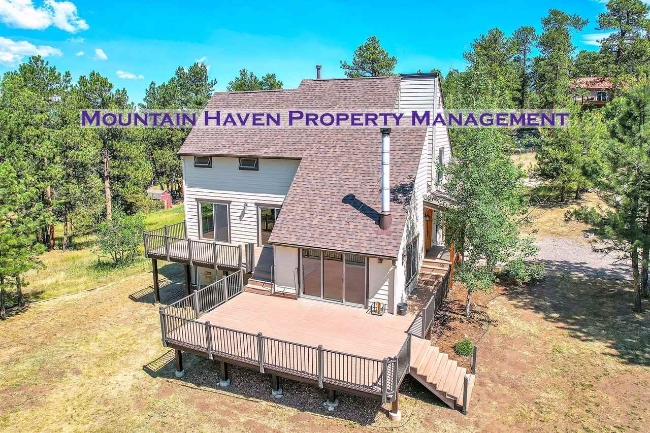 LIVE THE MOUNTAIN LIFESTYLE in this immaculate, updated mountain home! This rare Indian Hills home, situated on 1.63 acres is the perfect combination of mountain living and convenience to the city. Spend your days hiking or mountain biking Mt Falcon Park (just up the road), and your evenings surrounded by trees and wildlife on the private deck or cozied up in front of the wood-burning fireplace. This home features 3 bedrooms + Office, 3 bathrooms, an updated kitchen, vaulted ceilings with an open loft overlooking the living room, and two car garage. 12 min to downtown Evergreen and Evergreen Lake, 12 min to Hwy 285, and 12 min to C-470. Be on the ski slopes in less than a hour! Washer/Dryer included. No smoking and no cats please. One small dog considered. Occupant limitations due to well and septic. Visit www MountainHavenCO com to fill out an application to set a showing.