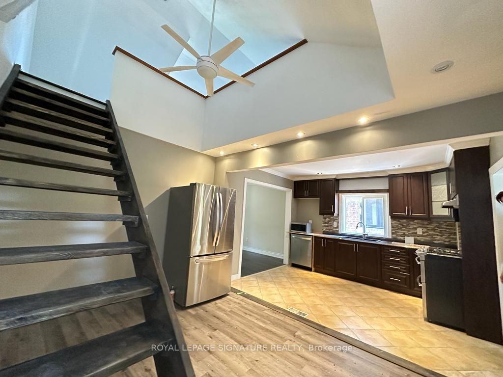 Welcome to this exquisite main floor of a charming house. Step into a beautiful open concept living and dining space with 1 bedroom on the main floor, 1 den and 1 loft- styled bedroom upstairs; creating a unique and captivating living space. Modern kitchen with sleek stainless steel appliances (fridge, stove, dishwasher) ensuring stylish and functional cooking space. The washer and dryer are shared with the basement unit. Parking is available on the street. Located near UP Express (get to Union Station in 35 mins) and public transit (upcoming LRT is a 10 min walk). Extras:SS Fridge, SS Dishwasher, SS Oven, SS Microwave, Upper tenant pays for 60% of all utilities. Washer/Dryer in Basement.