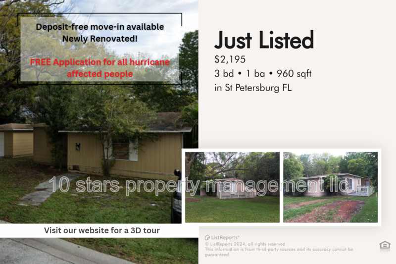 ** New listing with 10 Stars Property Management ** For any questions regarding the property or the rental process please call or text (727) 666-5388 Beautiful 3 beds 1 bath is available for rent in Saint Petersburg, FL. Located in the heart of Saint Petersburg, 450 47th Street South is surrounded by a mix of vibrant city life and peaceful nature spots. Just minutes away, you'll find the serene Boyd Hill Nature Preserve, perfect for nature walks and bird watching. The nearby Gulfport area offers charming boutiques, restaurants, and access to Boca Ciega Bay, while the stunning Gulf beaches, like St. Pete Beach and Treasure Island, are a short drive away. Major roads, including I-275 and US-19, provide easy access to downtown St. Petersburg and Tampa, ensuring you're never far from the action or a day at the beach. Features: - Application fee will be credited back on the 1st month of rent if approved - Beautiful wood floors continue throughout for cohesive style - Basic kitchen appliances included for your everyday cooking needs - Ceiling fan to keep the air cool and breezy - Spacious large detached garage for plenty of storage and parking Pets are allowed. No more than 2 pets per property. Weight limit of 55lbs per pet. No aggressive breeds. Applicants must complete a free pet application and have animal approved with vaccination record. The monthly pet fee will be determined by your pet screening score. Does not apply to medically/emotional support prescribed and/or service animals. Details on our website: https 10starshomes com rental-guidelines At 10 Stars, we offer multiple services to make your stay with us easy and comfortable. We have a same-day application approval and a quick move-in for no additional cost. Our team is professionally trained and will be able to assist with any leasing, billing, or maintenance issues our tenants have. We also offer an emergency line available 24/7 for any urgent cases. Tenants have access to an online portal where they can make rent payments, communicate with our team and get updates on their payments and maintenance requests at all times. THE FIRST MONTH AND SECURITY DEPOSIT ARE REQUIRED We do offer a DEPOSIT FREE MOVE IN option and a TENANT BENEFIT PACKAGE that includes: rebuilding your credit feature, cash back rewards, online portal access and free concierge service! Details on our website: https 10starshomes com move-in-without-a-deposit Renter's insurance is required prior to moving in. Rules and Regulations are on our website! www 10starshomes com Only $65 non-refundable application fee per adult with 10 stars property management