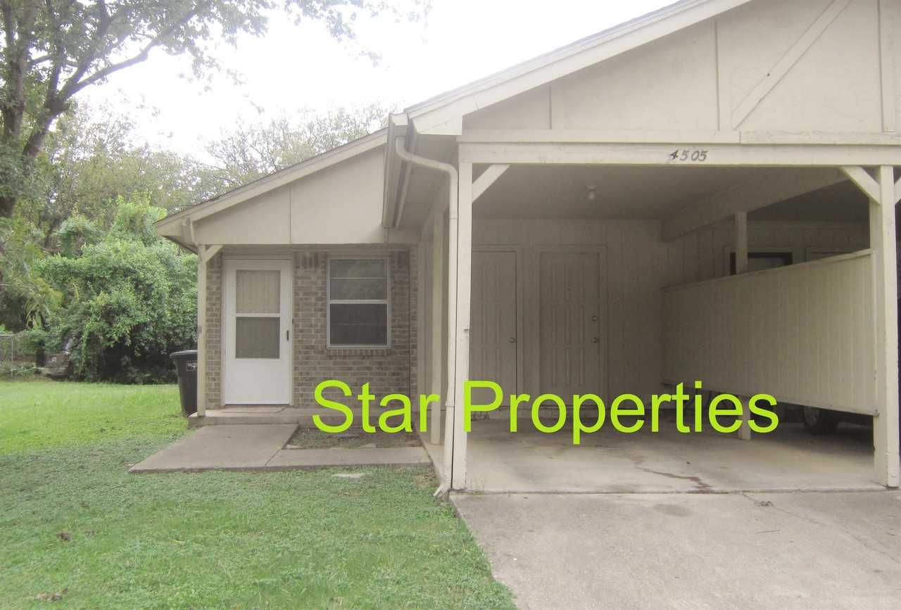 4505 Tree Lane Fort Worth 76114 is a cute 2 bedroom 1 bath 1 car carport duplex located in a quiet cul-de-sac in River District. Close to NAS-JRB, Lockheed, Downtown Fort Worth and 7th St area. Vinyl plank flooring in living areas and carpet bedrooms Open concept, central H/A, two walk in closets primary, w/d connections. Yard care provided. NO ANIMALS & NO SMOKERS ALLOWED. No Housing Programs Accepted. Rent $1100 Deposit $1100 Owner/Broker