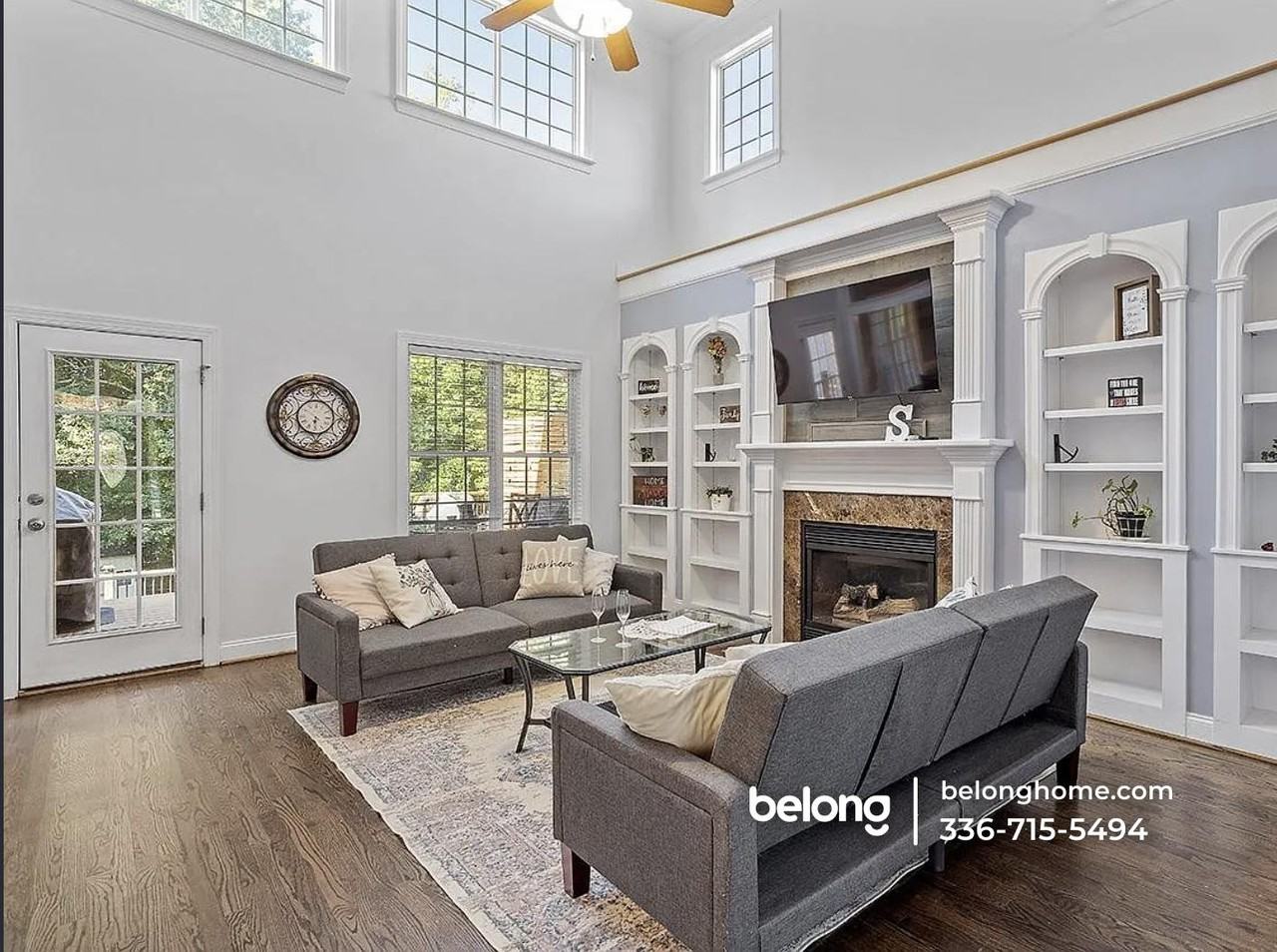 A fireplace, soaring ceilings, tall windows, and a ceiling fan define the main living space of this quiet, well-proportioned home, offering warmth, natural light, and pleasant backyard views. With three bedrooms, two and a half baths, and a layout that balances openness with privacy, the interior supports comfortable, everyday living. The main living area is anchored by built-in shelving and a functional arrangement that works well for daily routines and relaxed gatherings. The fireplace serves as a visual focal point, while the surrounding space remains calm and quiet throughout the day. Views toward the backyard create a peaceful backdrop and help the interior feel removed from street activity. Upstairs, a bonus room on the top floor adds flexibility for an extra room, workspace, or hobby area. Bedrooms are proportioned for practical use, and three pets are allowed, making this home a good fit for households with multiple furry companions. Set within a family-oriented neighborhood, the community is known for friendly neighbors. Grocery options such as Food Lion and Harris Teeter are close by, with additional shopping and dining available at Crossroads Plaza and Cary Towne Center. Outdoor recreation is nearby at Lake Johnson Park and Hemlock Bluffs Nature Preserve, and major routes provide convenient access to downtown Raleigh. *Fireplace is for decorative use only and cannot be used without consent from Belong. *Our homes come as-is with all essentials in working order. Want upgrades? Request it through the Belong app, and our trusted pros will take care of the rest!