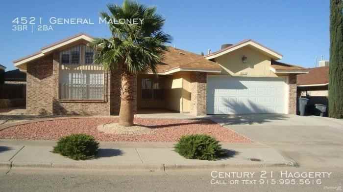 3-bedroom apartments at 4521 General Maloney cost about 2% more than the average rent price for 3-bedroom apartments in El Paso.