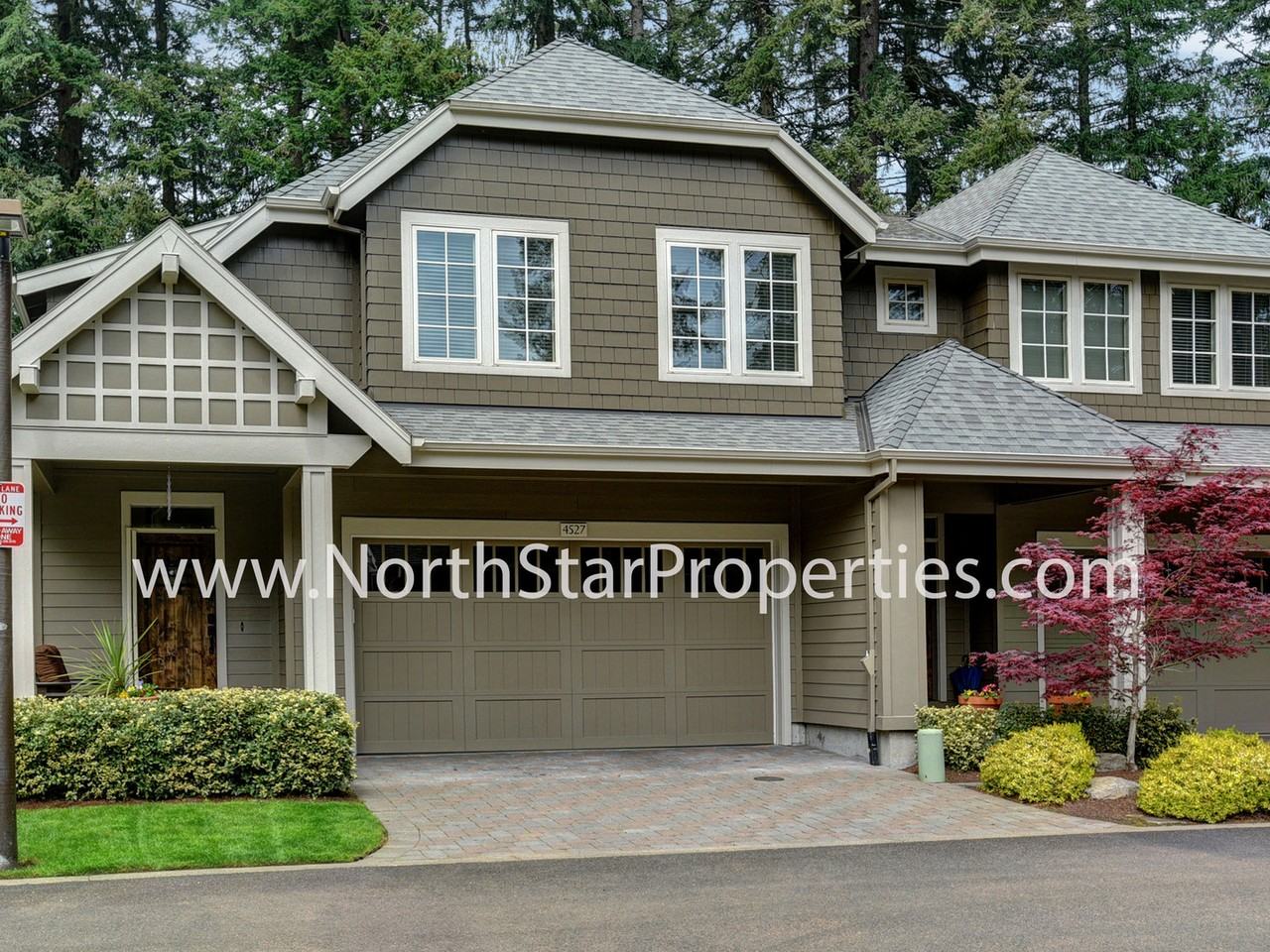This is a superb townhome in the highly desirable Trillium Woods neighborhood, located in Lake Grove. Backing to the woods and Waluga park, this is a nice quiet setting. With both a front porch and a back porch and patio, this home has a great indoor/outdoor feel. Entering the home, you will notice the beautiful hardwood floors and the vaulted ceiling. The hall leads to the dining area and living room with a gas fireplace and windows looking out to the back wooded area. The kitchen opens into both the dining area and the living room and features and island with eating bar, granite counters, stainless steel appliances, convection oven, hood and gas range. There is a sliding glass door leading from the kitchen to the back patio, water feature, Weber gas grill and woods. Also on the main level is a nice half bathroom for guests and a two car garage with an epoxy floor. Upstairs you will find a spacious master bedroom looking out to the trees. The master bathroom has a soaking tub, shower, double sinks and a walk-in closet. There are two nicely sized bedrooms that share a hall bathroom with a tub/shower combination and a nice laundry room with a newer washer and dryer. This is a great location close to restaurants, coffee and shopping. No pets and no smoking please, Lake Grove Elementary, Lake Oswego Jr. and Sr. High Schools. Please refer to our website listing for an accurate reflection of amenities reported by the owner: https northstarproperties com portland-properties