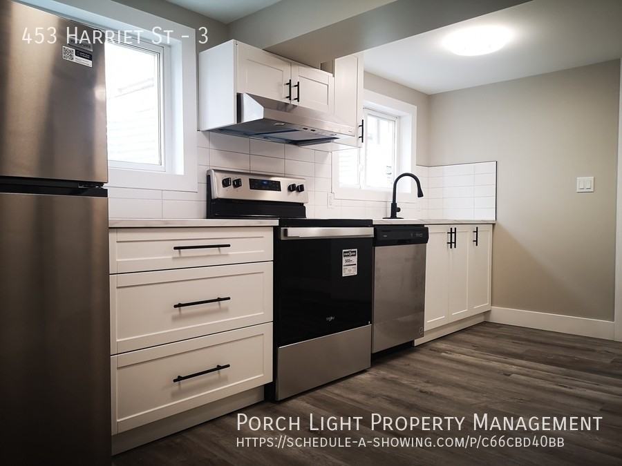 Beautiful Renovations Private Laundry Stainless Steel Appliances Dishwasher Open Concept Kitchen Lots of cabinet space Tile backsplash Quartz Countertops Spacious bedroom Double Closet Full bath with tile surround Top of the line, modern finishes $1195 + Hydro Parking available $50/month Heat is hot water rads and included in the rent