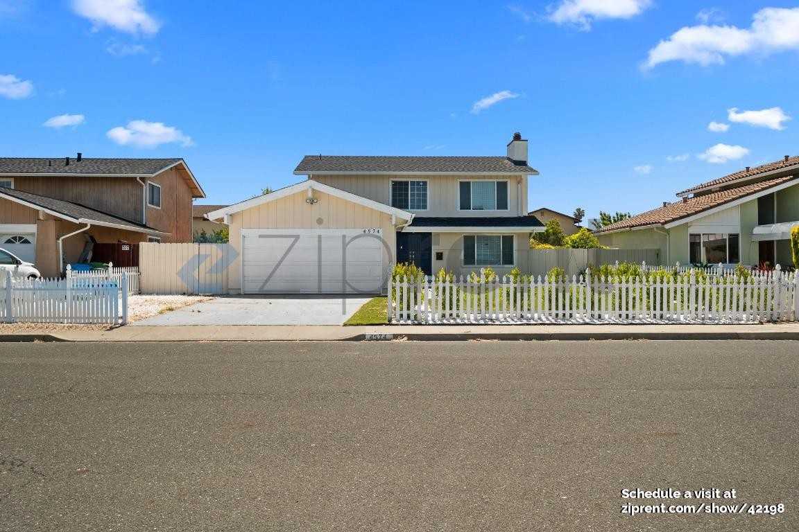 This property is available. Please inquire on this site to schedule a showing. Welcome to this charming two-story home located at 4574 Ellen Way, Union City, CA 94587. Nestled in a serene neighborhood, this property boasts a delightful curb appeal with a classic white picket fence and a well-maintained front lawn. The spacious interior features an open floor plan that seamlessly connects the living and dining areas, perfect for entertaining. The living room is highlighted by a cozy fireplace and large windows that flood the space with natural light. The modern kitchen is a chef's dream, equipped with sleek stainless steel appliances, elegant countertops, and ample cabinet space. The house comes with a fully functional digital home gym (Tonal) system! Upstairs, the primary suite offers a peaceful retreat with a spacious layout and a luxurious en-suite bathroom. Additional bedrooms are well-sized, providing plenty of space for relaxation or work-from-home needs. The backyard is a private oasis with a sunroom that invites year-round enjoyment and a versatile shed for extra storage or creative projects. With its prime location near parks, schools, and shopping centers, this home offers both convenience and tranquility, making it an ideal choice for anyone looking to settle in Union City. Available: NOW Heating: ForcedAir Cooling: None Appliances: Refrigerator, Range Oven, Microwave, Dishwasher Laundry: In Unit Parking: Attached Garage, 2 spaces Pets: Case by Case Security deposit: $4,200.00 Included Utilities: None Additional Deposit/Pet: $500.00 This property has a home security system. Disclaimer: Ziprent is acting as the agent for the owner. Information Deemed Reliable but not Guaranteed. All information should be independently verified by renter.
