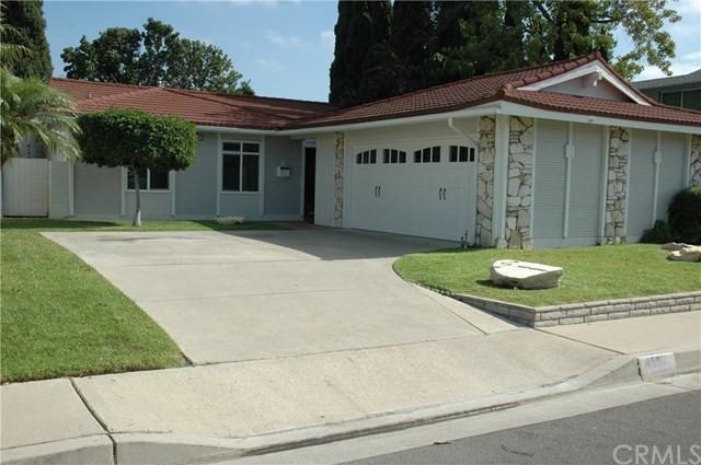 Here's a gorgeous family home near center of a great neighborhood. Beautiful freshly painted home with three bedrooms and two full baths. Home has wood laminated floors and like new carpet. The kitchen has mostly new Stainless Steel appliances, French doors in both Dining and Living rooms. The Living room has a fireplace and entry to the patio and back yard. The two car garage is spacious with newer door, laundry hookups and leads directly to the kitchen. Home has dual pane Milgard windows throughout and nice window dressings. Lovely front and back yard landscaping with sprinklers, rear brick  patio and brick at front lanai entrance to house also gardener is included in rent.