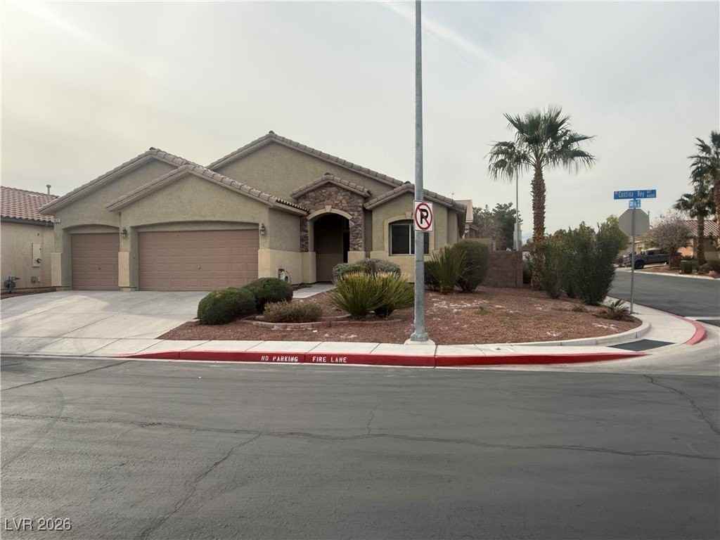 Property Status: Active Beautiful single-story home with a 3-car garage on a premium corner lot in an all single-story community! Freshly painted, beautiful, and move-in ready, this bright and open floor plan features all tile flooring throughout, tons of natural light, and a spacious kitchen with new quartz countertops and stainless steel appliances—perfect for everyday living and entertaining. Enjoy the convenience of a separate laundry room with a sink. Fully landscaped front and backyard are maintained and paid by the owner. Ideally located close to shopping, dining, and major conveniences. Schedule your showing today! Office Phone: (702) 799-9598 Copyright © 2026 Greater Las Vegas Association of REALTORS®, Inc. All rights reserved. All information provided by the listing agent/broker is deemed reliable but is not guaranteed and should be independently verified.