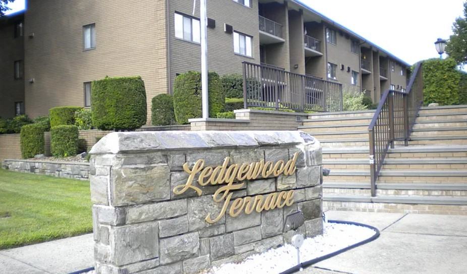 Highly coveted Ledgewood Terrace Condominium complex. Beautiful, well-maintained, one bedroom 3rd-floor unit with balcony overlooking the tranquil courtyard garden. The bedroom has ample closet space and can fit a king-size bed. Steps away from quick NYC bus transportation and close to everything. Coin-operated washer/dryer on the ground floor. There is a swimming pool, security cameras, and plenty of parking. (No pick-up trucks allowed to park per Condo Association rules). Available February 1st. One year plus lease. Utilities are not included. No pets. Credit check, proof of income, bank statements, references, and interviews are required. Rent includes 1 parking spot. Security deposit: 1-month rent and tenant pays 1-month rent realtor fee.