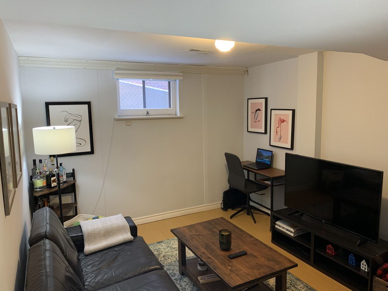 Bright semi open-concept kitchen/living space. Kitchen is large enough to fit a small table & chairs with upgraded s.s. appliances Spacious living area that can comfortable fit any sectional and TV stand. Decent ceiling heights throughout w/ gorgeous hardwood floors & enough windows to let in plenty of natural light Bedroom has plenty of room to set up a queen bed & furniture to make this space a true oasis for you! Storage/cold room here as well! Shared backyard space (shared with main floor tenants) Utilities (Average $100/month based on personal consumption) While no pets are preferred, great pet owners are negotiable! Street parking ONLY Ensuite washer and dryer. Street parking only. While no pets are preferred, great pet owners are negotiable!