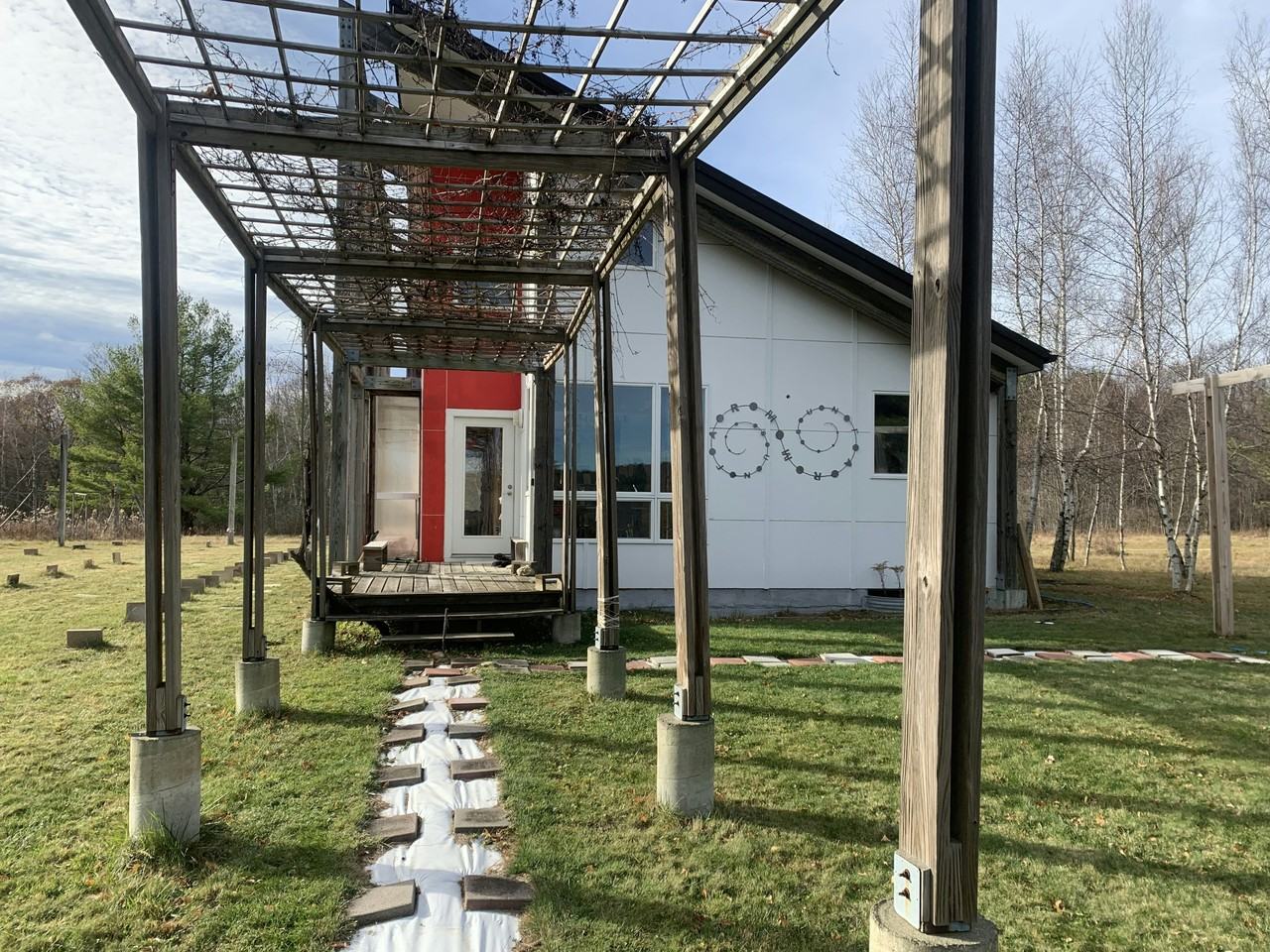 Experience absolute privacy and unparalleled creativity in this extraordinary rental property, nestled on a serene 68-acre estate just 12 miles from Hudson. This unique dwelling is part of S. U. N. F. A. R. M., a celebrated site-specific land art project, and offers a harmonious blend of art, architecture, and nature. All utilities are included for a seamless living experience. The property is conveniently located near Great Barrington and Catamount Ski Area. With trails winding throughout the estate, it is an ideal setting for hiking and cross-country skiing without having to leave the property. The house itself is a masterpiece, featuring design drawings, conceptual diagrams, sculptural furniture, and functional art that make every space a living canvas. The architecture frames the natural surroundings with sculptures and sundials, creating a lifestyle rooted in experiential art. Immerse yourself in this inspiring retreat, where creativity and nature come together in perfect harmony.