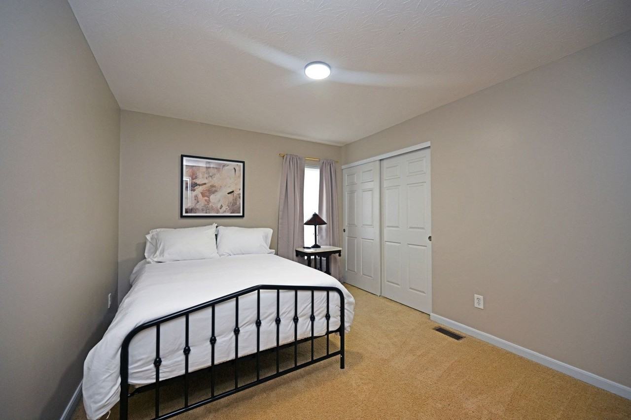 Located at the end of a private drive with a suburban feel although in the city! Quiet neighborhood and neighbors, two car garage. 3 bedrooms have large walk in closets, the fourth bedroom (full size bed) has a standard closet. All bedrooms have televisions. Two full bathrooms upstairs, 1/2 bath in living area, 1/2 bath in basement with seperate shower located in a unfinished part of the basement. Most of the basement is finised.