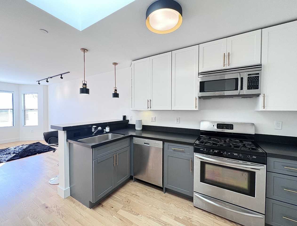 Year Built: 2005 Bedrooms: 1 Bed Bathrooms: 1 Bath Parking: Available Lease Duration: 12 months lease Deposit: $2,495 Renting Unfurnished Laundry: In Unit Floor: 6th Property Type: Condo Built-in 2005, the building is located in the heart of SoMa. The sophisticated top floor fully remodeled 1BD/1BA unit boasts a hardwood floor throughout, an open kitchen with stainless steel appliances and a breakfast bar, a spacious bedroom with a large closet, and a washer and dryer. To complete the package, this chic building offers a rooftop terrace with dramatic City views. Unbeatable location offers easy access to Caltrain, 101 and 280 freeways, MUNI, Bart Embarcadero waterfront, Ferry Building, Financial District, Salesforce Park, Union Square, SF Giants, and Warriors Stadiums, Whole Foods, Costco, two Trader Joe's, Target and the best restaurants in the city. UNIT FEATURES: * Hardwood floor throughout * Bay windows * Stainless steel appliances and breakfast bar * Large closet * Laundry closet LEASE TERMS: * 12-Month Lease * Parking Available * Owner pays for trash, sewer, and water. * Tenant responsible for gas/electric * Application Fee $42