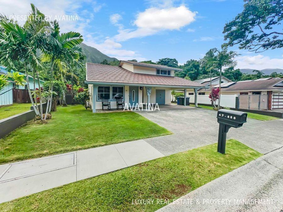 Welcome to the coveted Club View Estate in Kaneohe! Beautifully remodeled pet friendly 3 bed, 3 bath home with a huge 27 panel photovoltaic system to lower electricity bills plus you have stunning mountain views! The living room features a vaulted ceiling with a 96" fan, beautiful hardwood floors plus AC throughout. Off of the living room is the updated chefs kitchen, an eat-in island with everything a cook could want. The dinning room has tons of natural light with a sliding glass door leading to the back covered lanai, salt swimming pool and fenced backyard. The home backs up to a preserve with no rear neighbors and amazing Koolau Mountain views. There is a bedroom and full bath on the main floor along with a laundry room with full size washer & dryer. Upstairs is the Primary suite with an ensuite spa like bathroom, walk in closet with built in organizers and a private covered balcony. The 3rd upstairs bedroom also has custom closet organizers and its own full bathroom in the hall. Pool service and landscaping is included. YouTube Tour: https youtu be 4jDzaE8ql08 3D Virtual Tour: https tour-uswest metareal com apps player?asset=8d1cb4b8-1148-4b8d-a198-7b1aa6ec1610&position=3 78x1 74y0 33z&rotation=0 45x180 44y0 00z You can view all of the properties and schedule showings at https www avatinapropertymanagement com availability Or call: (808) 645-4490 Address: 47-668 Hui Alala St. 1 yr lease, Rent = $5,990 a month plus $15.50 Liability to Landlord Insurance & credit reporting fee, Security Deposit: $5,990. All rents & security deposits are due at signing. Liability to Landlord and Renters Insurance required. $20.00 application fee, and a one time $75.00 onboarding fee. Monthly Pet Fee $100 per pet. Pet security deposit = $500. per pet. Services included landscaping, pool service. Presented by Avatina Pool Service Refuse Yard Service
