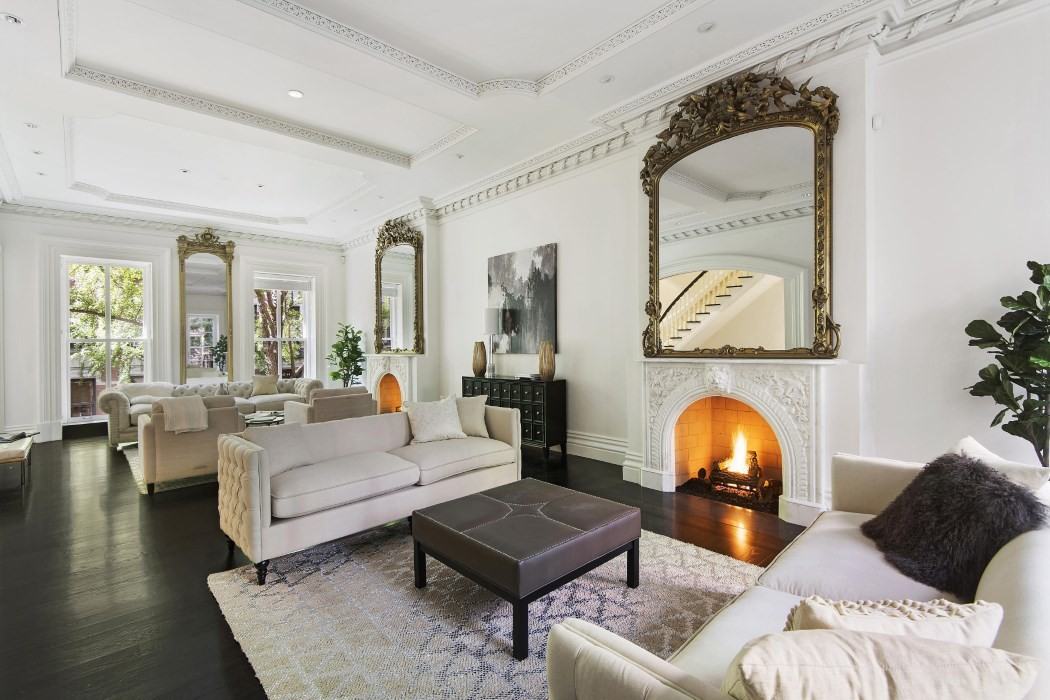 This extraordinary one-of-a-kind townhouse is being offered after an extensive renovation that combines the state-of-the-art modern amenities while leaving the original details intact. This extra wide approx. 28' home is located on the highly coveted 'Gold Coast' of Greenwich Village. The Anglo Italianate townhome with approx. 9,200 square feet includes 6 bedrooms, 7 full and 3 half baths spread over 5 floors of sumptuous living. Garden level: Library with fireplace, state of the art eat-in kitchen with dumbwaiter and den both looking out onto the lush patio and gardens. Parlor level: Early 40 foot grand living room with matching fireplaces on each end, dining room with servants pantry and two terraces overlooking the gardens. 3rd level: Entire floor dedicated to the master bedroom suite with fireplace, double bathrooms, double walk-in closets, separate sitting room, and terrace. 4th level: 3 bedrooms and 3 baths. Basement level: Home theater, fitness center, bath, and steam room, 1,000-bottle wine cellar, laundry, and staff quarters.