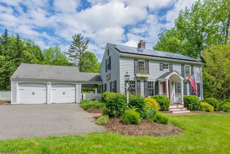Fabulous location near the village of Brookside and the highly rated Mendham Twp schools. Spacious living spaces, updated baths, kitchen and lovely property make this an ideal home. The kitchen has stainless appliances, custom farm sink and adjoining breakfast room for casual dining. Formal dining room has custom built in cabinetry and flows nicely to the kitchen/breakfast area. Living room has great windows allowing for ample natural light. Sunken family room has glass doors that open to an over sized deck area perfect for outdoor entertaining and recreation. Warm wood floors and fireplace make for a great spot to relax and enjoy the views of the private rear property. Master bedroom has sitting area with fireplace to warm on chilly nights. Energy smart green home with solar panels.